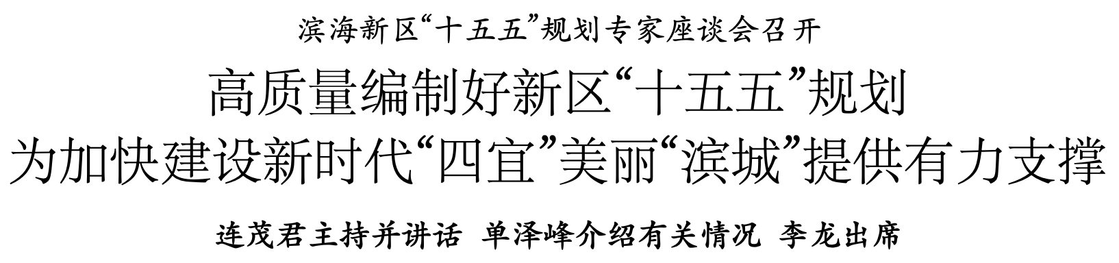 连茂君强调,“十五五”时期是基本实现社会主义现代化夯实基础、全面发力的关键时期,也是新区落实国家战略使命,加快建设新时代“四宜”美丽“滨城”,实现高质量发展的关键时期。要深学深用习近平总书记关于做好“十五五”规划编制工作的重要论述和视察天津重要讲话精神,坚持目标导向与实事求是相结合,找准国家大局所需、天津全局所要和新区所能的结合点和发力点,科学确定“十五五”发展目标和重点任务,以高水平规划引领高质量发展。要突出发展重点,全力推动港产城现代化发展,加快建设世界一流智慧、绿色、枢纽港口,加快构建现代化产业体系,积极扩大有效投资,进一步推动消费升级,扩大高水平对外开放,提升城市职住平衡水平,打造港产城融合发展示范样板区。要明确发展方式,坚定不移走内涵式发展之路,全力抓“三新”、促“三量”,进一步提升全要素生产率,坚定不移推动绿色发展,加强韧性安全城市建设。要强化要素保障,扎实提升要素精准协同配置能力,进一步加强数据、创新金融、绿色发展等要素供给,积极推动产业链向细分领域延伸,提升产业全链条发展水平,持续优化营商环境,构建更加完备的创新生态。要强化统筹协同,高质量完成规划编制任务,主动对接上级规划方向,充分征求各方意见,协同推进总体规划和专项规划,确保规划更科学、更高质量。