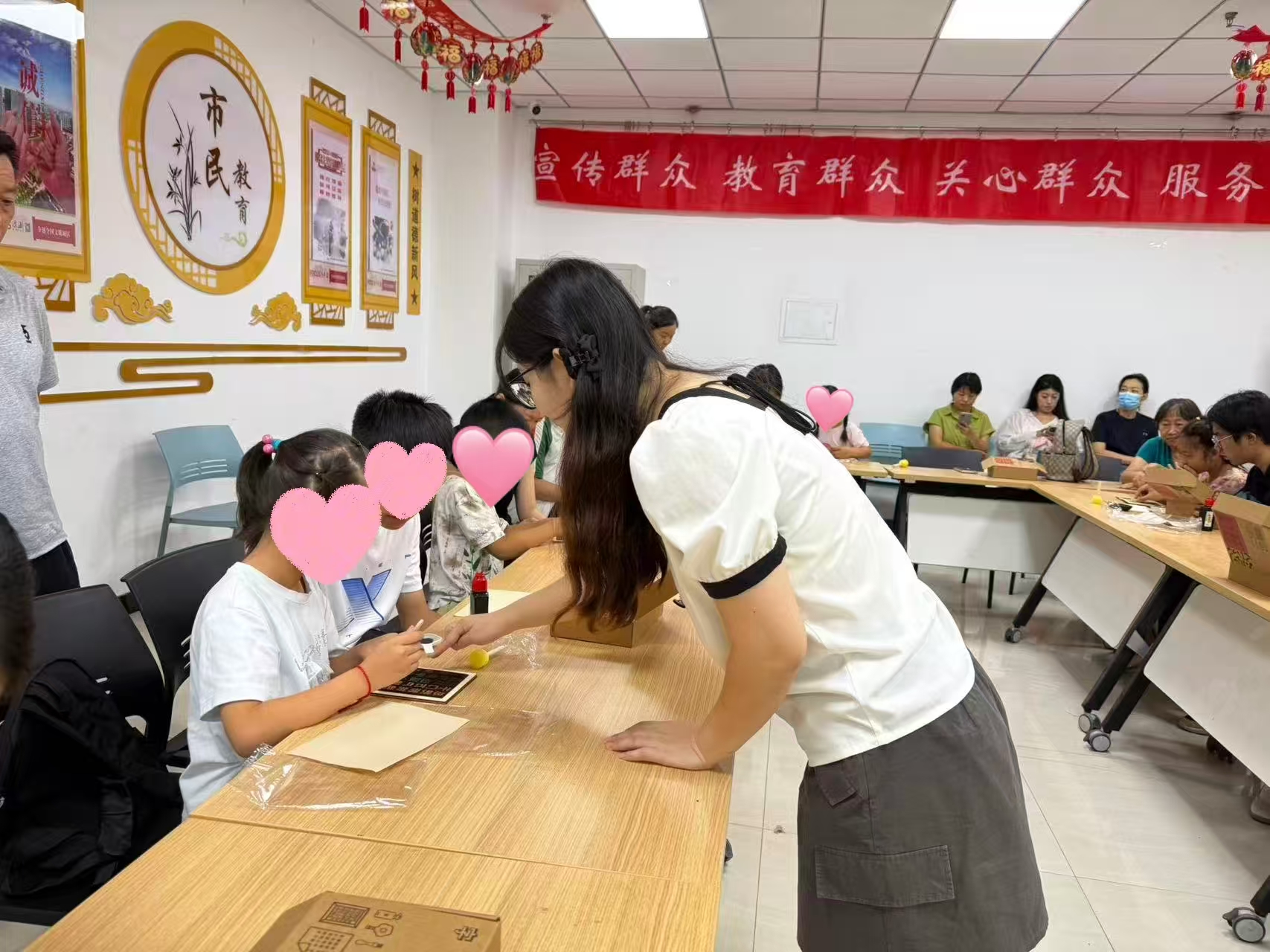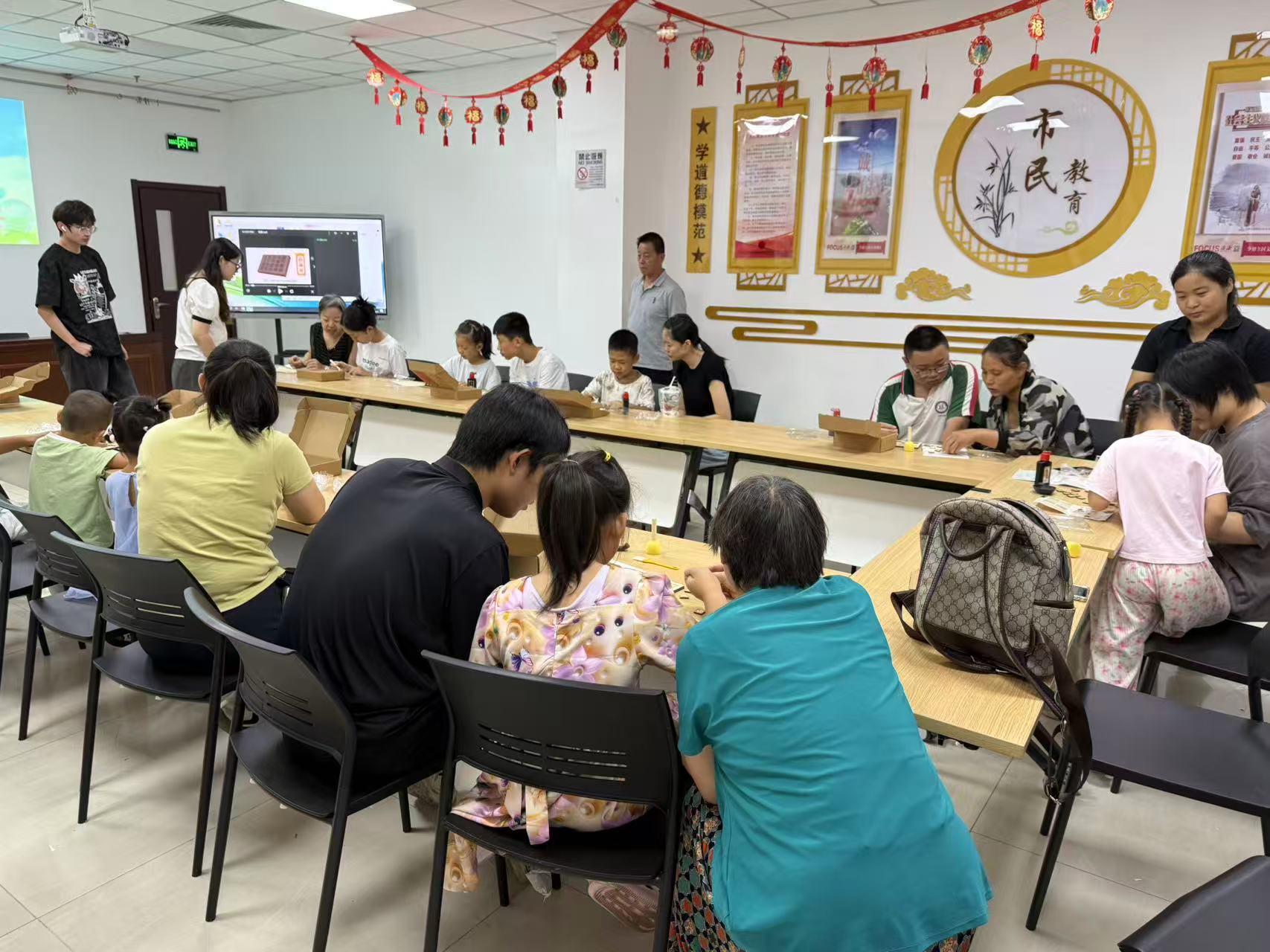 动手实践环节是活动的高潮。工作人员现场演示木活字刻制、字模排版、用刷子蘸取环保油墨印刷的完整流程后,孩子们分组操作,志愿者一对一耐心指导。孩子们认真专注地完成每一个步骤,在亲手拓印中触摸历史温度,感受动手的乐趣。最后的分享互动环节,孩子们积极展示自己的作品,畅谈活动中的收获与感受,现场氛围热烈而温馨。
