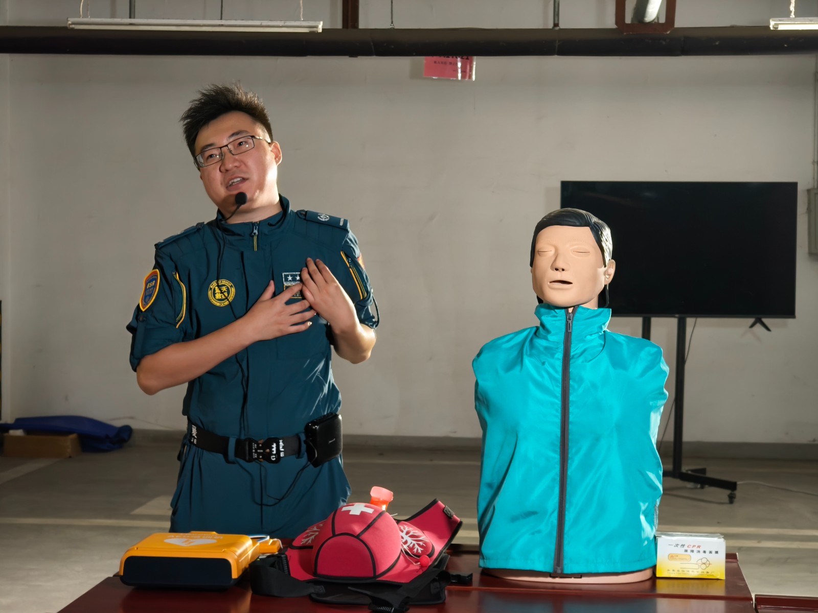 记者在活动现场看到,宣传展区前滨海新区国防动员办公室微信公众号及线上线下知识竞答活动,吸引群众扫码参与。应急演练区一场紧张有序的人员紧急疏散演练于10:00准时开始,随着人防指挥车鸣响防空警报信号,参与群众在工作人员引导下,快速、有序进入地下人防工程。在人防工程内,专业人员详细讲解了工程结构、防护功能及应急避难注意事项,让群众直观了解“地下长城”的重要作用。应急救护技能互动体验区同样人气高涨,天津滨海人防蓝天救援队现场演示心肺复苏、止血包扎、海姆立克急救法等实用技能,并邀请现场群众亲手操作,通过“手把手”教学提升应急处置能力;通过“理论+实践”相结合的方式,让国防教育“活”起来、“实”起来。参与体验的社区居民王阿姨感慨道,“以前觉得急救知识离生活很远,今天亲自实践后发现这些技能关键时刻能救命!”