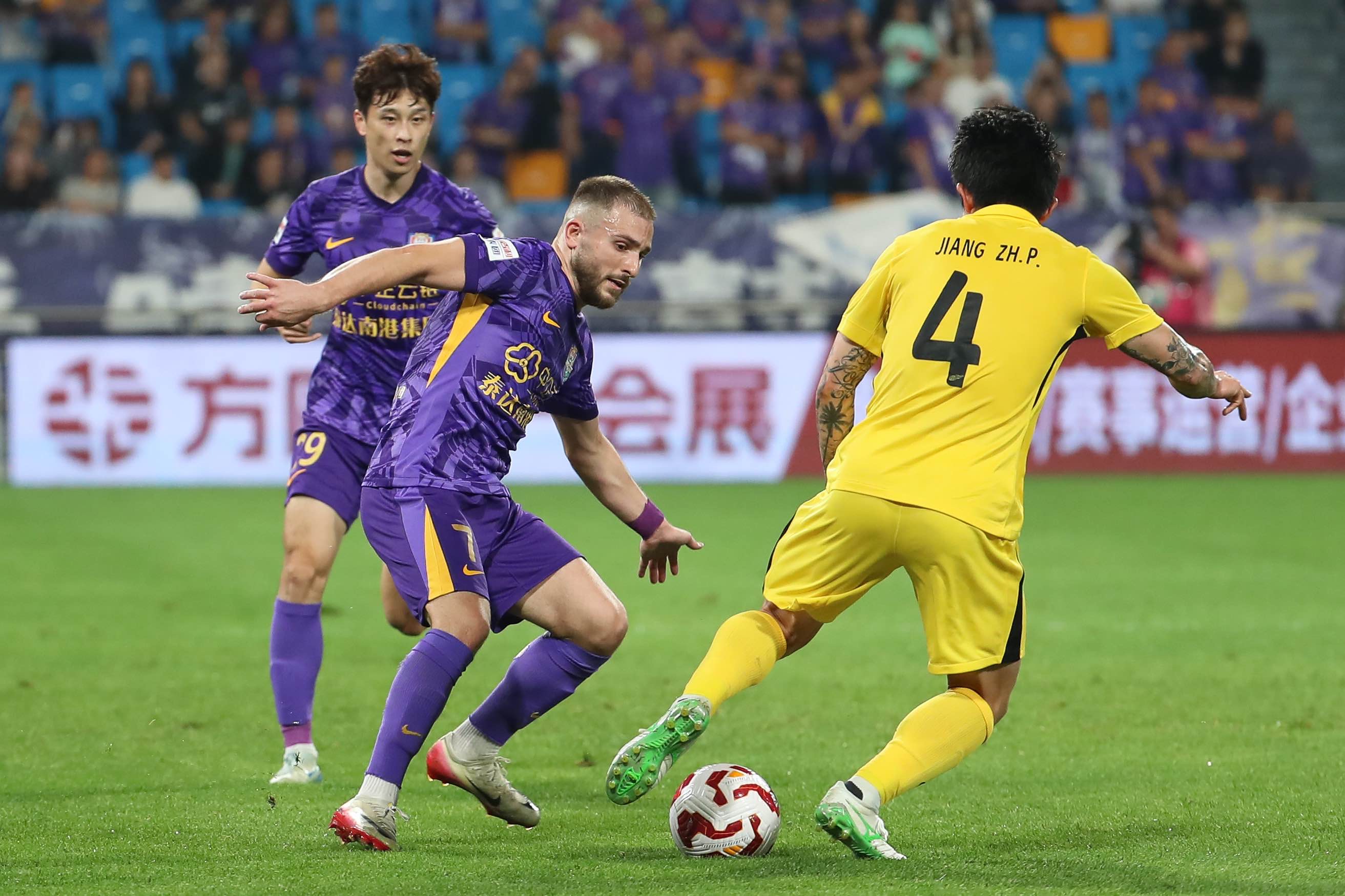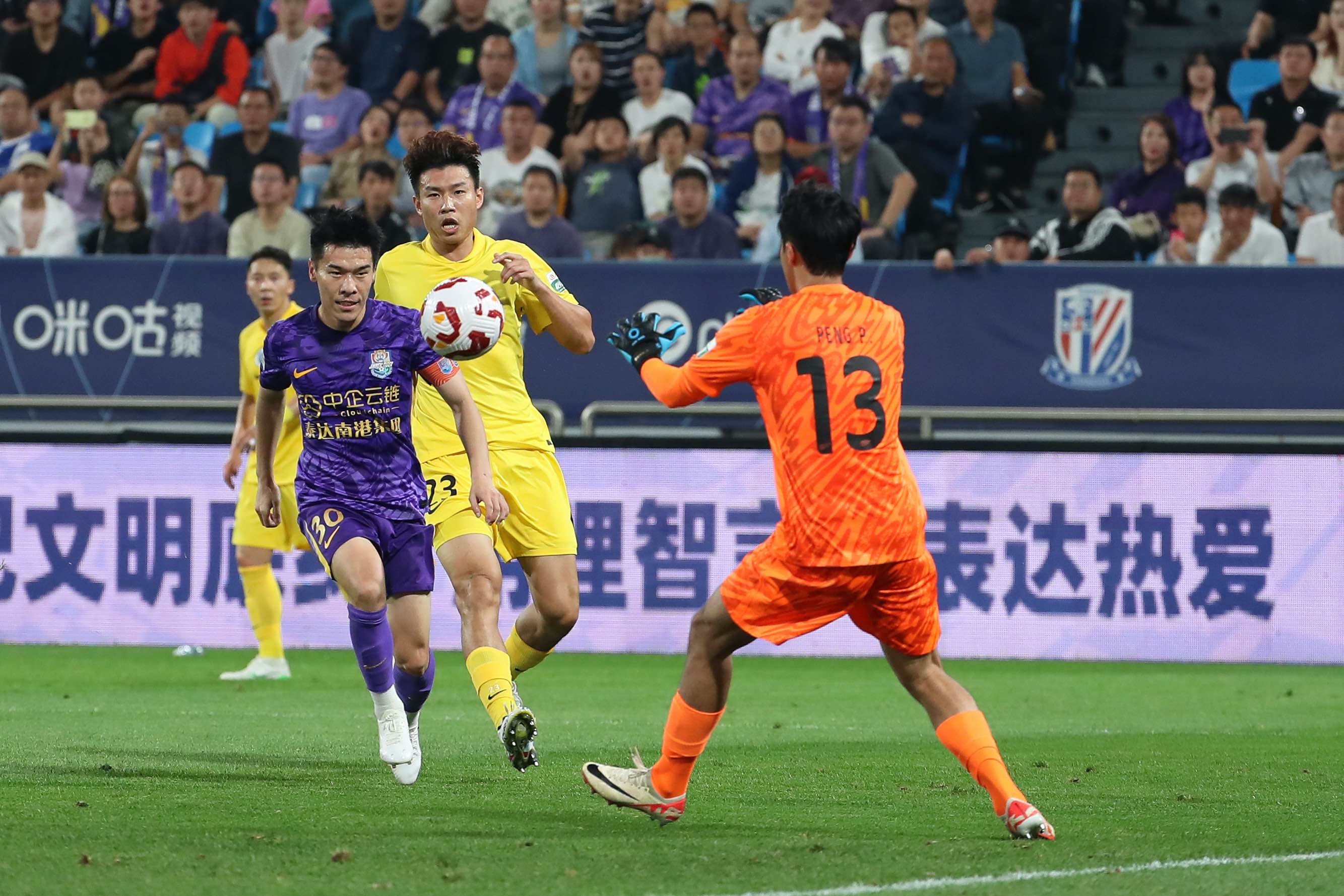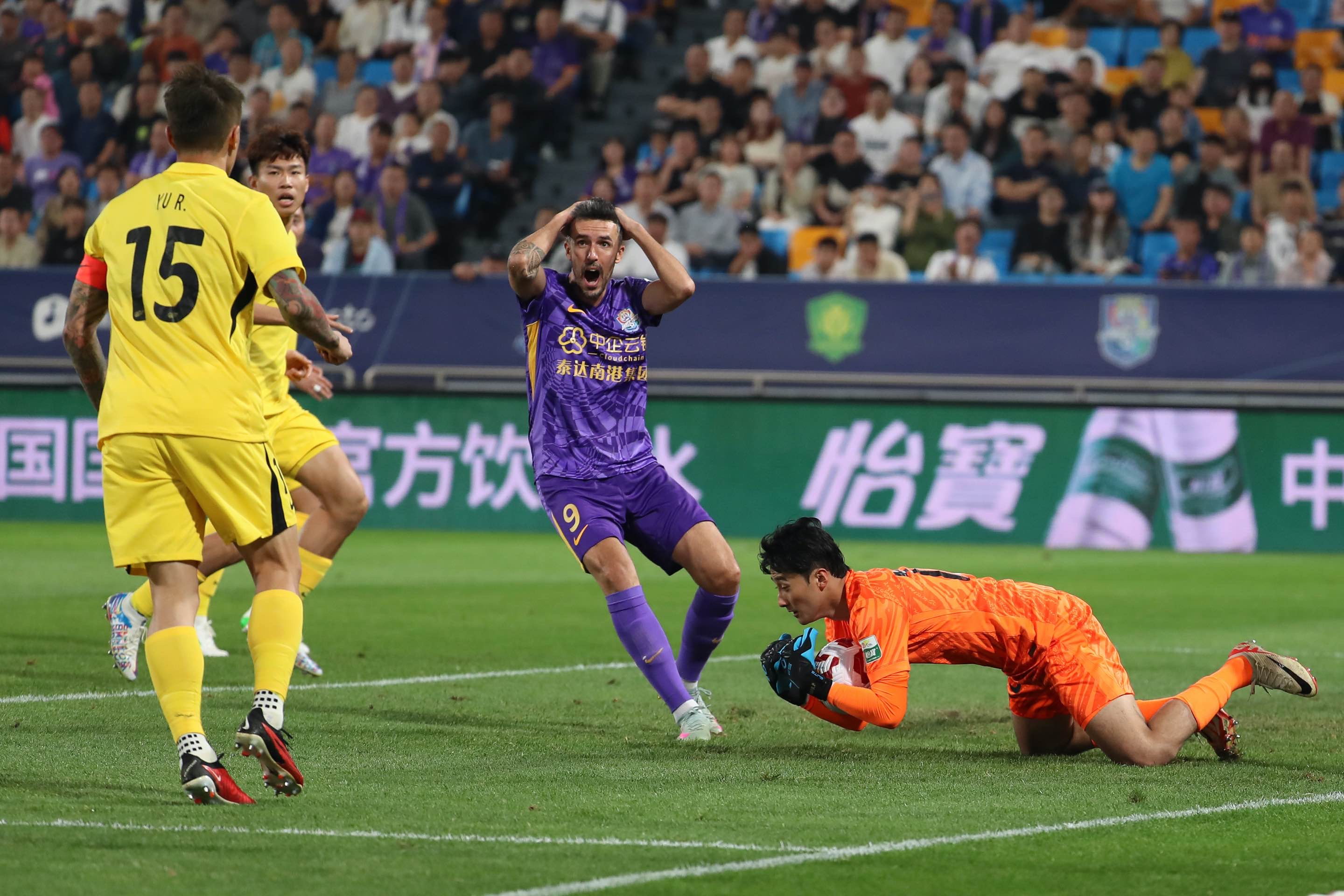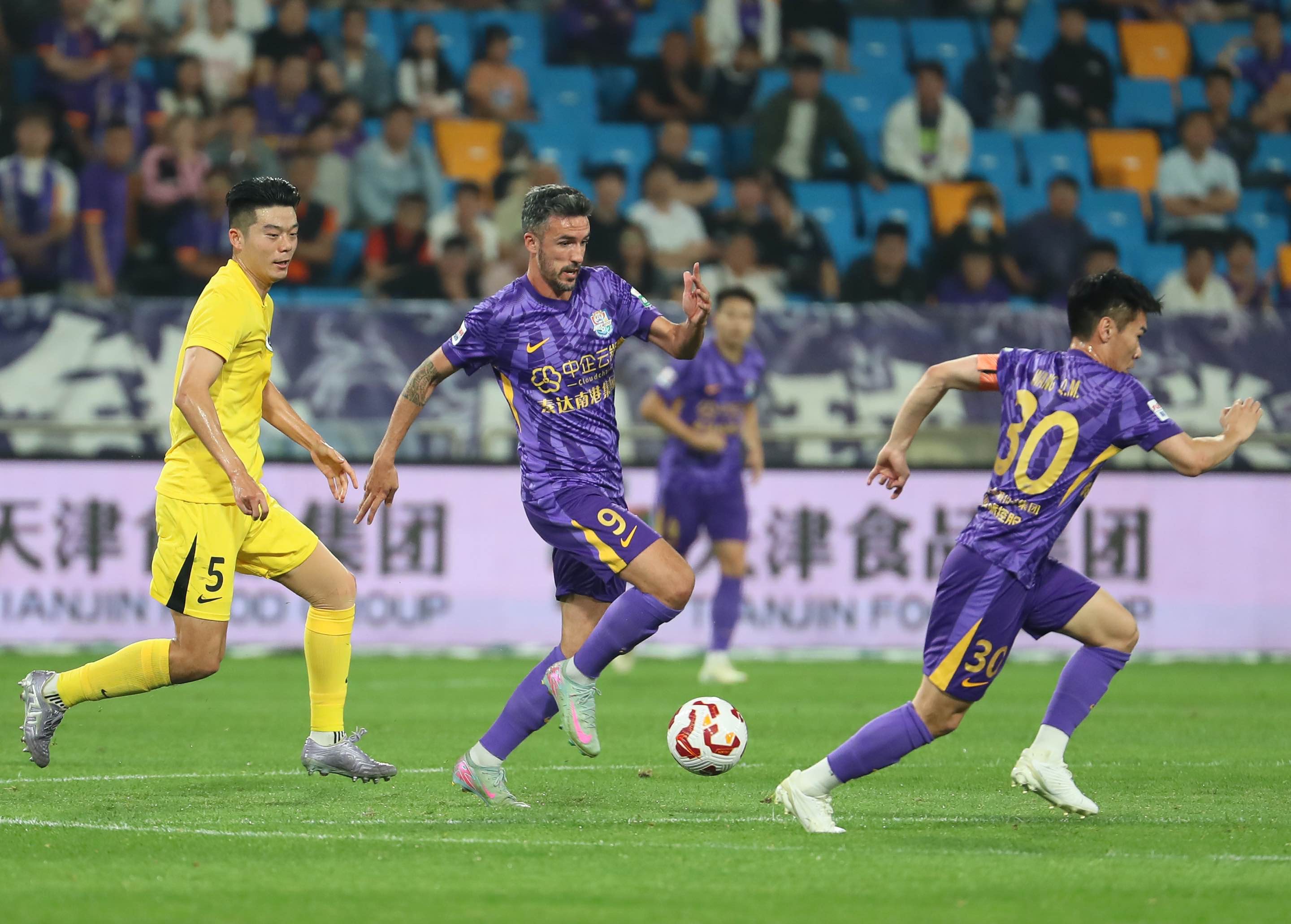 比赛开场后,主场作战的津门虎迅速进入状态,依托熟悉的主场节奏展开攻势。上半场比赛攻防节奏紧凑,双方多次在禁区前沿展开博弈,但均未攻破对方球门。双方攻防胶着至上半场尾声,僵局终被打破。阿代米禁区内扫射破门,泰达足球场瞬间被欢呼声淹没,球迷们挥舞着围巾、举起手机记录瞬间。