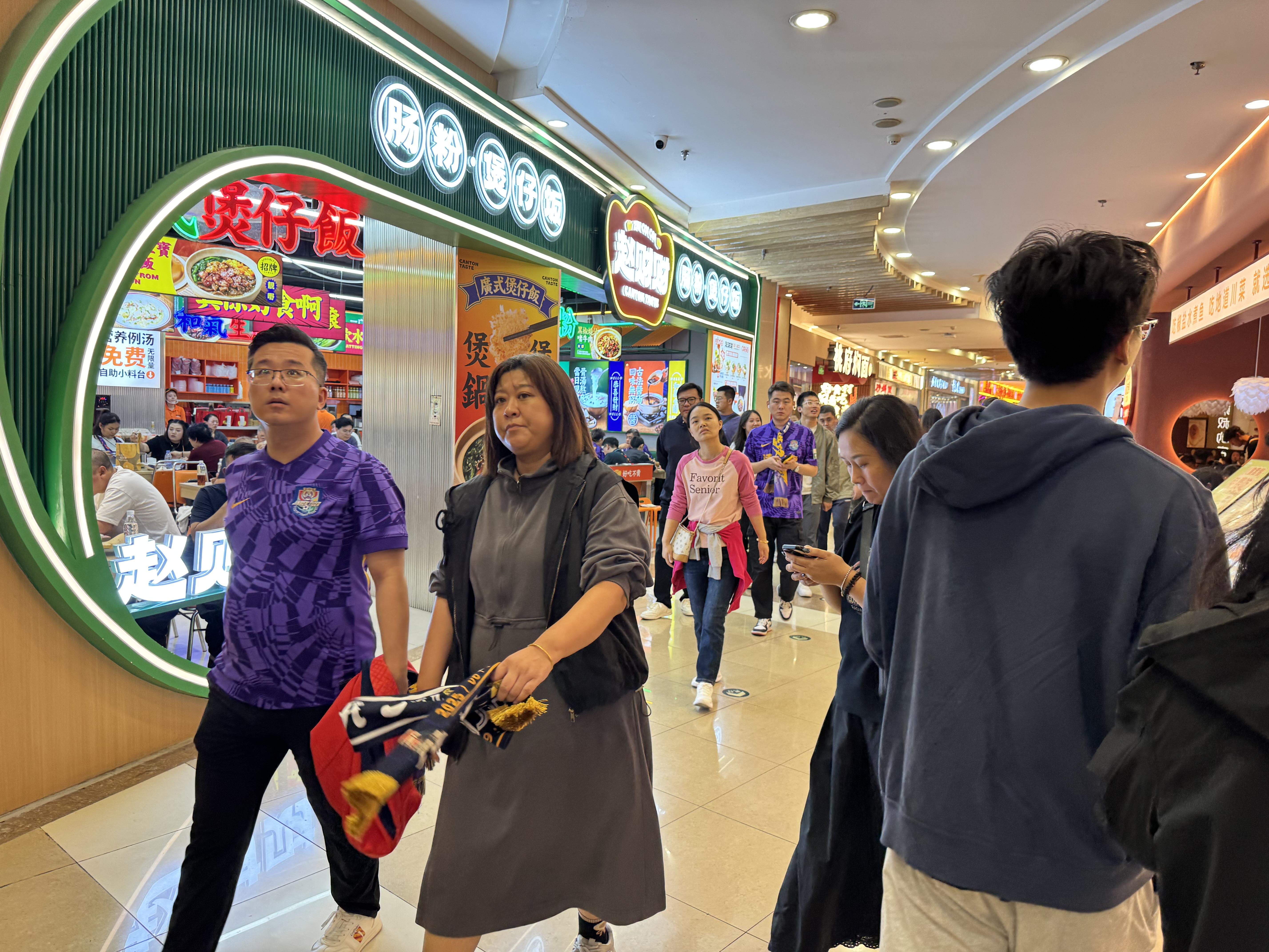 还未开赛,泰达足球场周边早已人头攒动。不少球迷选择提前到场,体验球场周边的商业氛围。泰达足球场周边商圈迎来消费热潮,毗邻的泰达时尚购物中心和永旺梦乐城人来人往,餐饮、购物等消费场景十分火爆,不少商家表示比赛日营业额明显提升。
