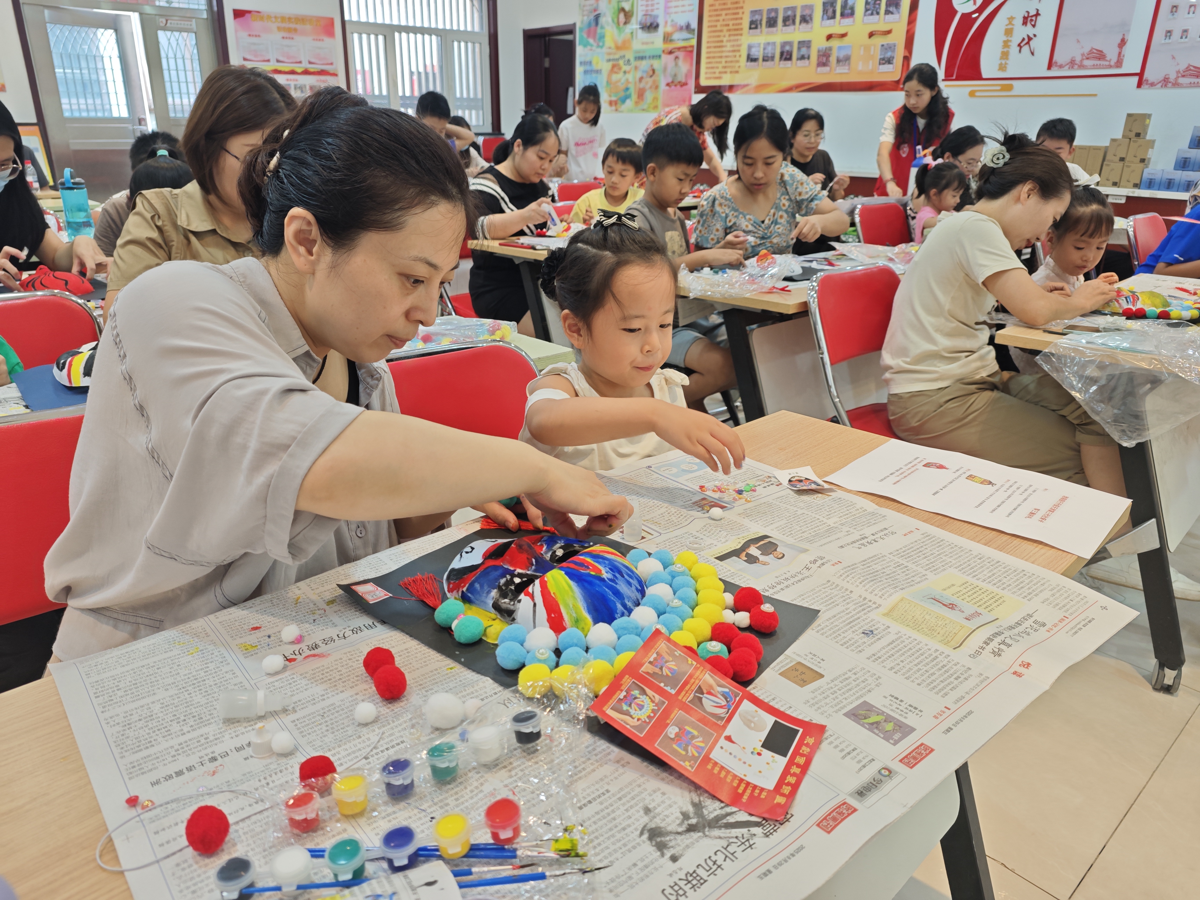 活动现场,志愿者特别讲解了中国传统色彩中的“月白”“秋香黄”“团圆红”等文化内涵,每一笔色彩都是历史故事的密码。随后孩子们化身“小小非遗传承人”,与家长共同开启创作之旅。亲子之间互相讨论色彩搭配,笑声与画笔摩擦声交织成最动人的旋律,画笔与颜料碰撞出无限创意。不一会儿,一张张风格迥异的脸谱新鲜“出炉”:红脸的关公威风凛凛,蓝脸的窦尔敦英气逼人,一幅幅个性鲜明的脸谱作品陆续诞生。