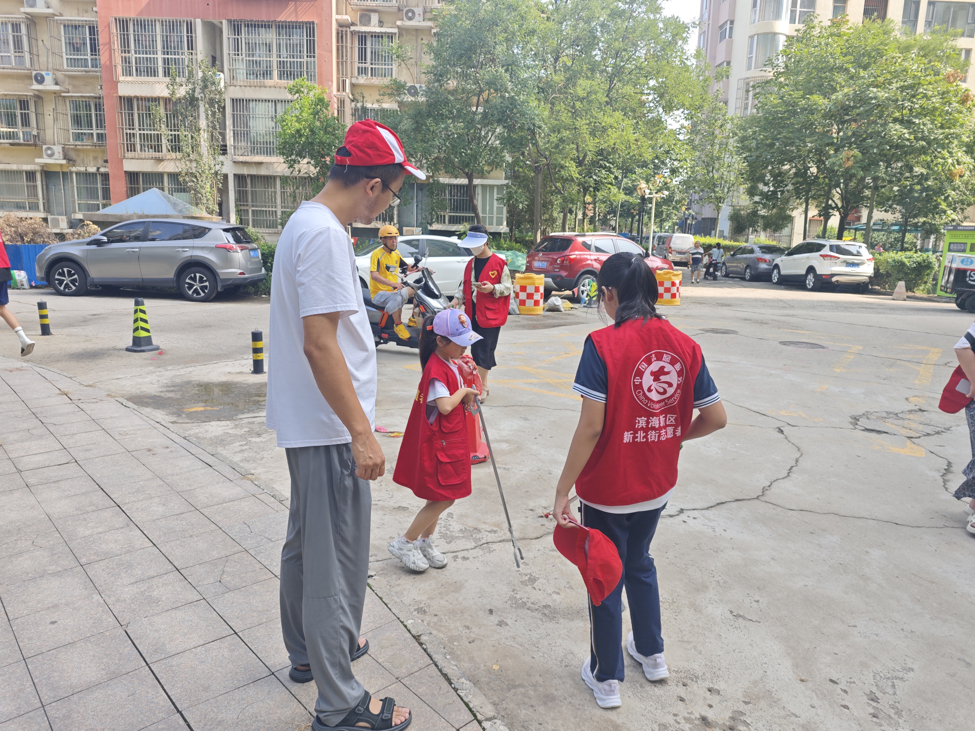 随后,一场“美化社区”实践行动拉开帷幕。孩子们手持垃圾夹子、环保垃圾袋,分成2个小组,在社区工作人员的带领下,对小区花坛、休闲步道、健身区域等角落进行细致清扫。落叶、烟头、塑料碎屑…… 哪怕是藏在草丛里的小垃圾,孩子们也不放过,大家互相配合、干劲十足。经过两个小时的努力,社区环境变得更加整洁,孩子们手中的垃圾袋也“收获满满”。
