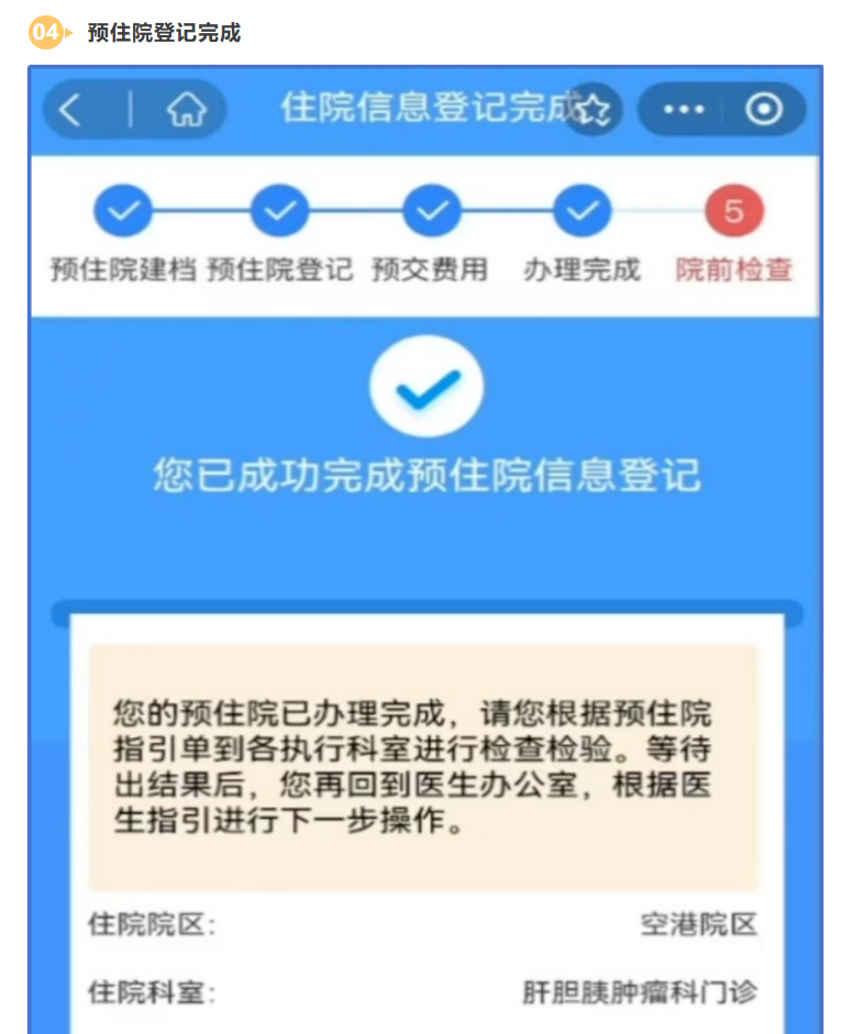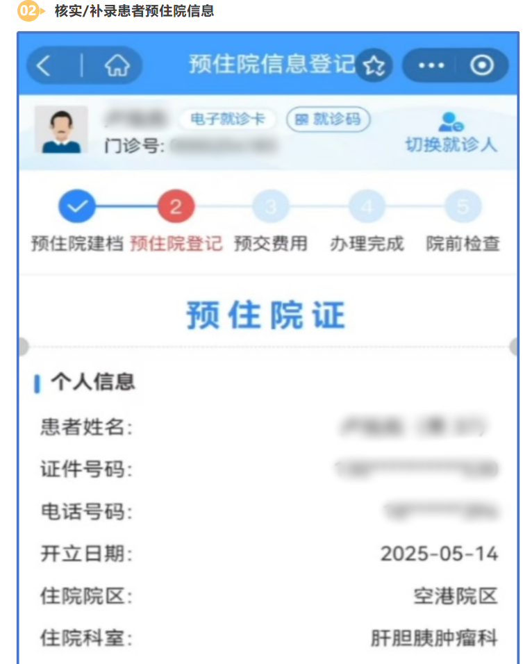 患者根据医生开具的预住院证,通过手机即可办理预住院登记手续,也可通过手机进行预住院充值、扣费和查看预住院导引单。转正式住院后,患者直接至病区护士站刷医保卡完成住院医保登记,预住院期间费用参照住院模式报销。(天津市肿瘤医院空港医院供图)