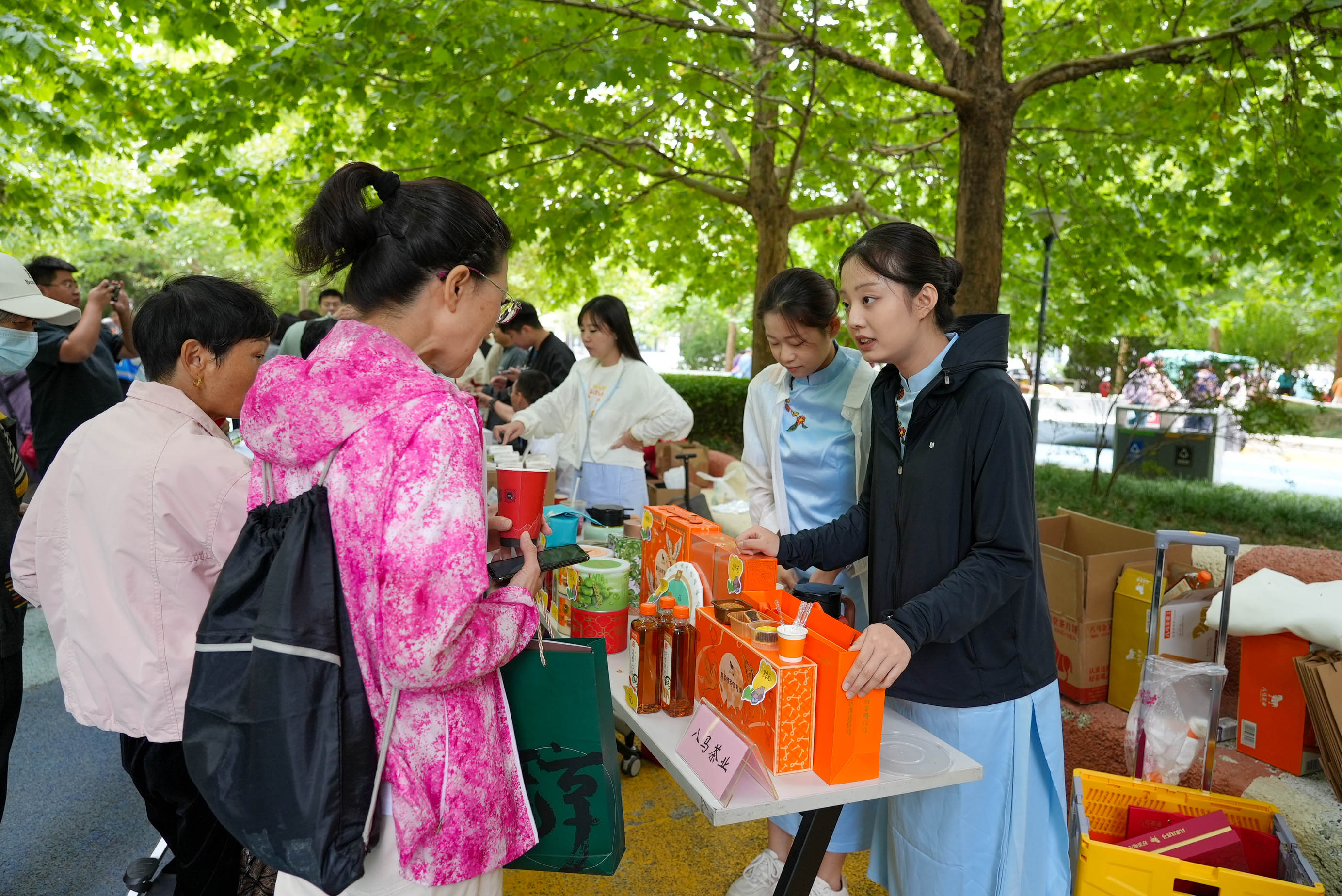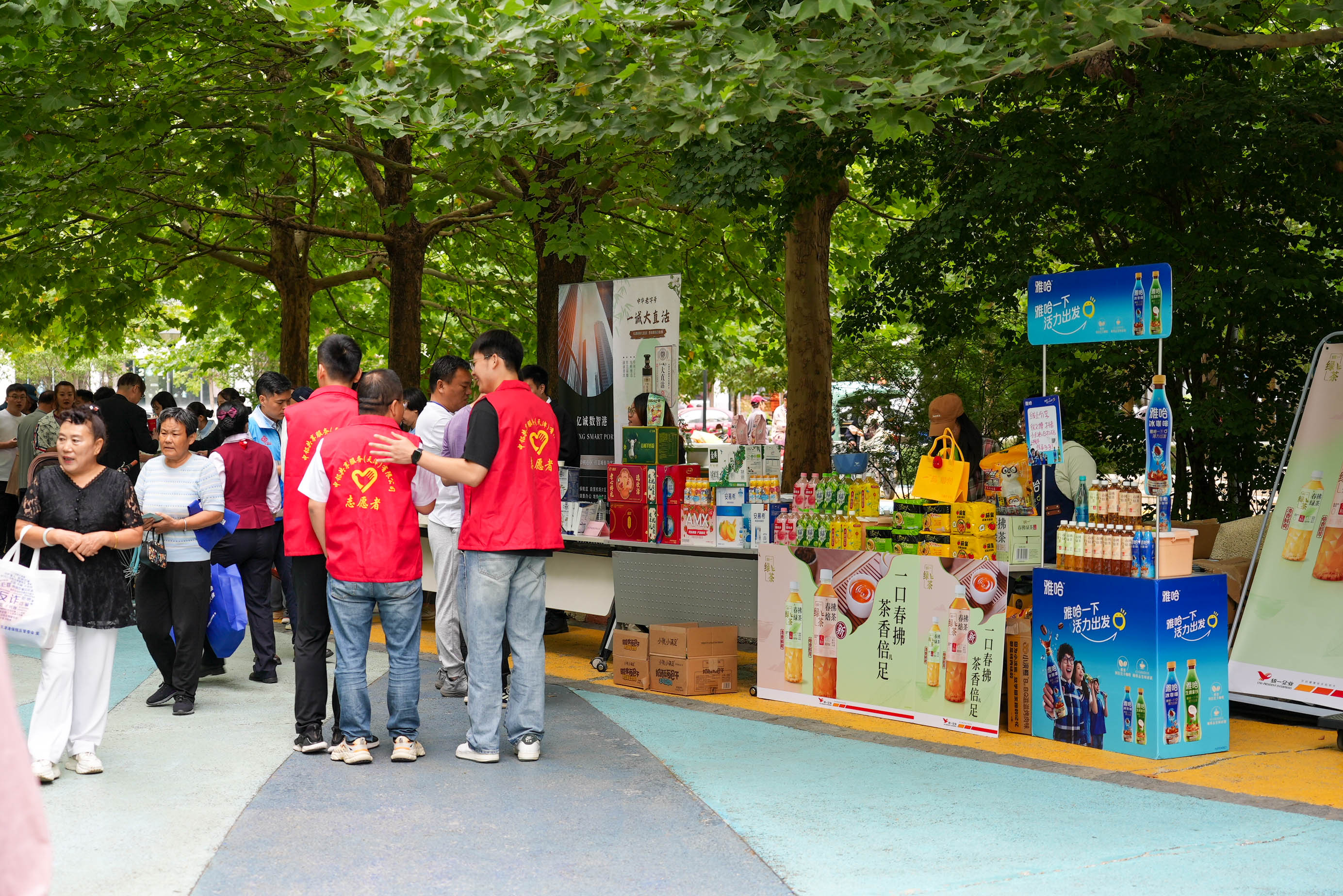 新时代文明实践主题市集上摊位琳琅满目,活动纷呈。现场既有围绕《天津市文明行为促进条例》、国防教育、网络安全、民族宗教知识、《民法典》及护苗绿书签行动等主题开展的集中宣传,也有来自天津滨海机场海关、保税区志愿者协会、蓝天救援队、兴业银行等单位提供的政策咨询、心理疏导、急救演示和金融安全知识讲解等便民服务。此外,海鸥、统一、伊利等驻区企业还带来了食品、饮料、奶制品等各类商品,满足了居民的多样化需求。