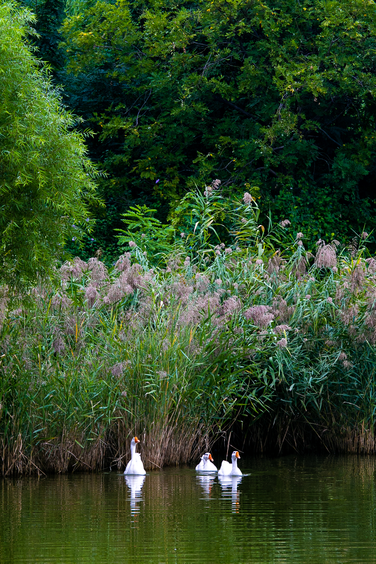 津滨网讯(记者 刘志国 摄影报道)鹅,鹅,鹅,碧潭秋波。秋日的生态城文化广场湖畔,别有一番韵味。水面如镜,几只白鹅悠然游弋。它们洁白的羽毛在秋光下愈发纯净,橙红的喙鲜艳夺目,划水时漾起圈圈涟漪,似在与秋水嬉戏。岸边,芦苇丛染上了浅紫的秋意,与翠绿的草木交织,背后的树林也褪去了部分浓绿,添了些秋的深沉。这静谧的秋景,因白鹅的灵动更显生机,仿佛一幅被大自然精心晕染的画卷,诉说着秋的温柔与美好。