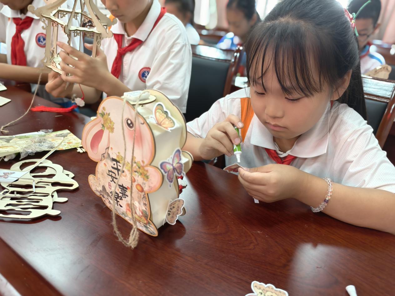 活动伊始,社区工作人员用生动有趣的语言,为孩子们讲述了中秋节的美丽传说、历史由来以及丰富多彩的节日习俗,让大家在故事中感受中秋文化的深厚底蕴。手工制作环节中,在社区工作人员的耐心讲解和一步步示范下,孩子们兴致勃勃地开始了创作。他们小心翼翼地用木板搭建起灯笼的稳固框架,然后将印有典雅书法、纹理独特的水纹纸仔细地包裹在框架四周,最后再精心点缀上立体的蝴蝶贴纸和飘逸流苏,一个个独具匠心、充满童趣的中秋花灯便在孩子们手中诞生了。