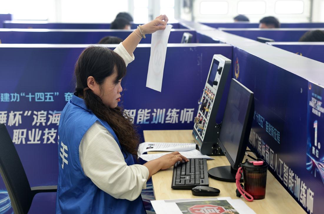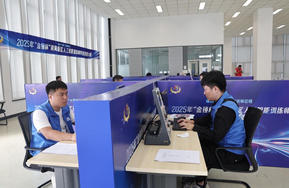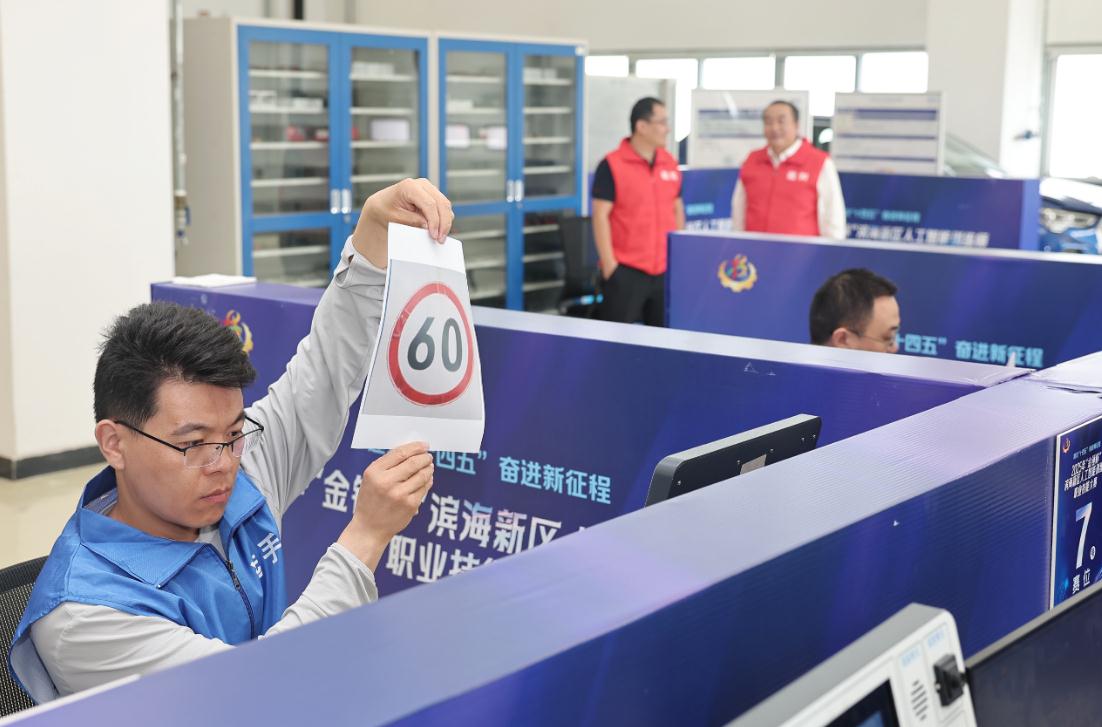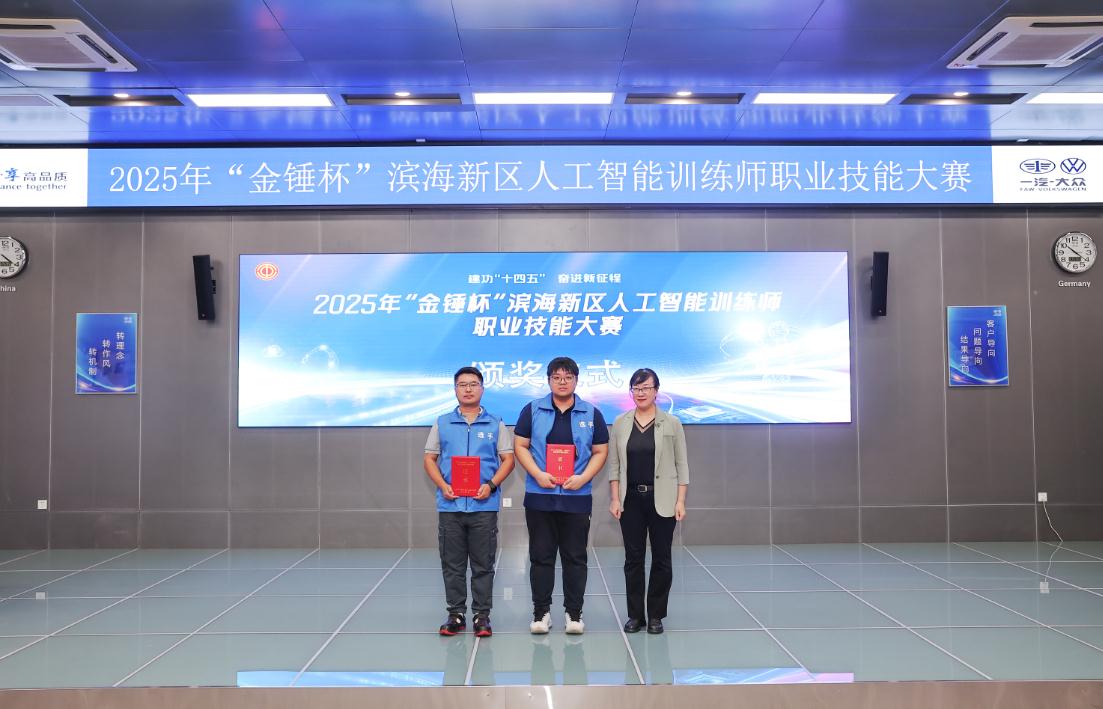 津滨网讯(记者 尹冰晶 报道 陈刚 摄影)一辆模型车沿着不规则赛道自动行进,精准地绕过“九曲连环”,最终稳稳停靠在终点。这并非出现在科技展览上,而是2025年“金锤杯”滨海新区人工智能训练师职业技能大赛决赛现场的一幕。9月25日,一汽-大众天津分公司的竞赛场内,16名脱颖而出的选手齐聚一堂,展开了一场关于人工智能技术应用的实力较量。作为滨海新区人工智能领域的专业赛事,本次大赛紧扣产业发展实际需求,全面检验选手在数据制作、算法优化到系统集成的全链条技术能力,为区域数字经济发展储备“生力军”。