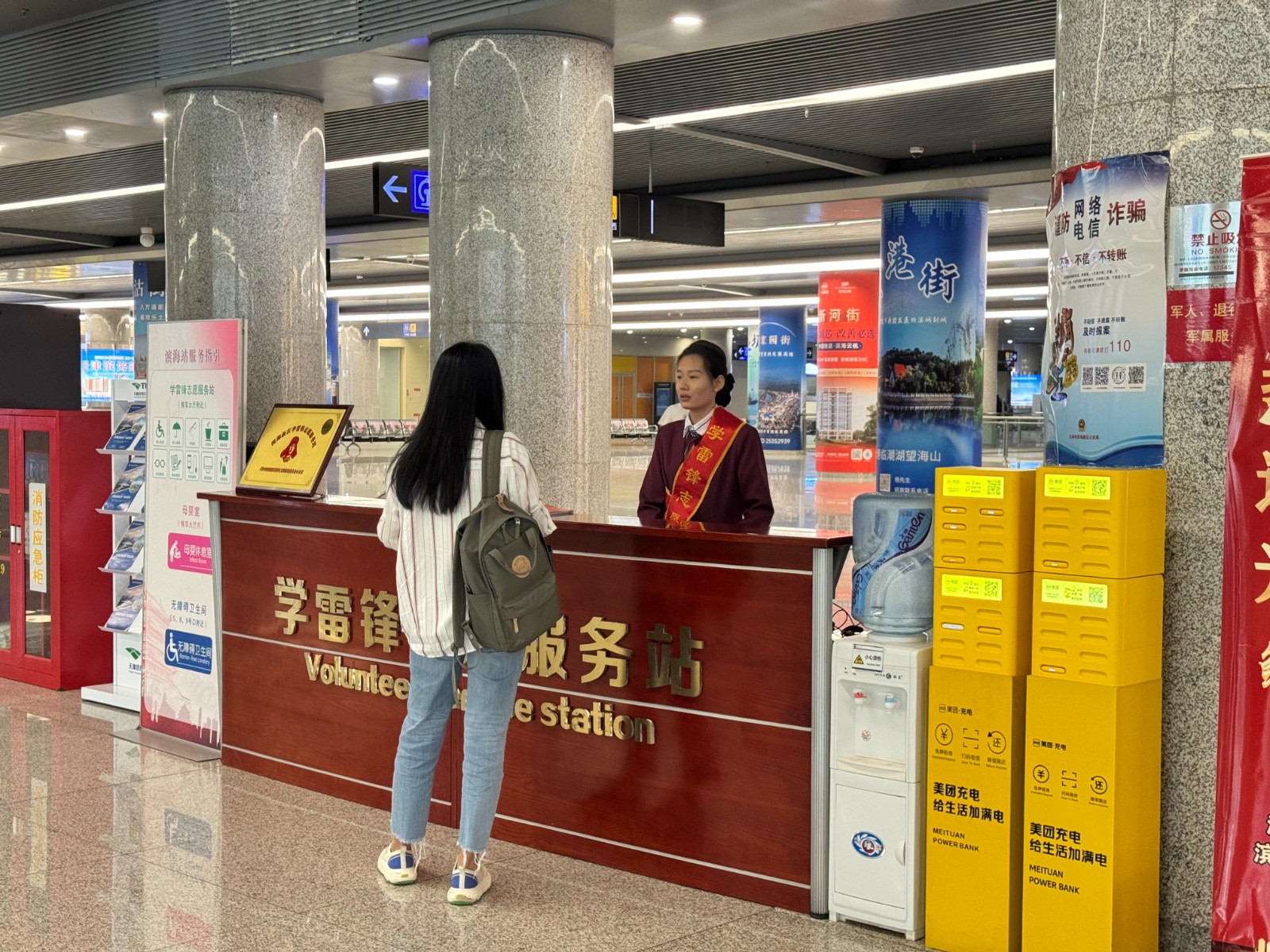 津滨网讯(记者 张伯妍 摄影报道)国庆中秋“双节”将至,为应对客流高峰,给广大旅客营造一个便捷、舒适、安全出行环境,天津滨海新区轨道交通运营管理有限公司(以下简称“轨道运营公司”)提前部署,周密安排,在滨海站推出一系列精细化现场保障措施,以高标准服务温暖旅客出行路。