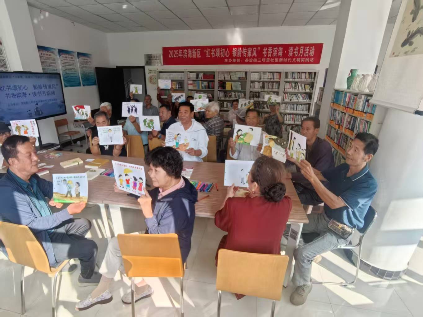 津滨网讯(记者 刘芸 摄影报道)日前,茶淀街道三明里社区开展“红书颂初心 银龄传家风”书香滨海·读书月活动,邀请社区老党员、居民代表走进市民书屋,学习红色思想,分享阅读故事。