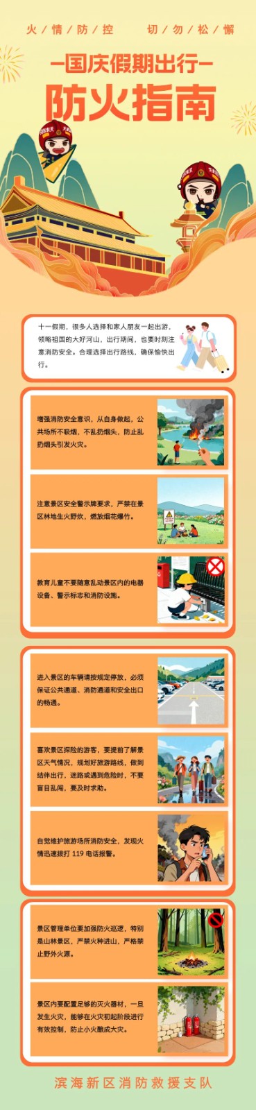 津滨网讯(记者 窦永滨 哈喆 通讯员 刘庆峰)国庆假期已经到来,无论是探亲访友、景区游览,还是居家休憩,消防安全始终是不可逾越的“底线”。为了让大家度过一个平安祥和的假期,新区消防救援支队特意准备了一份消防安全提示,请大家排查风险,为节日快乐增添一份安心保障。(图片由滨海新区消防救援支队提供)