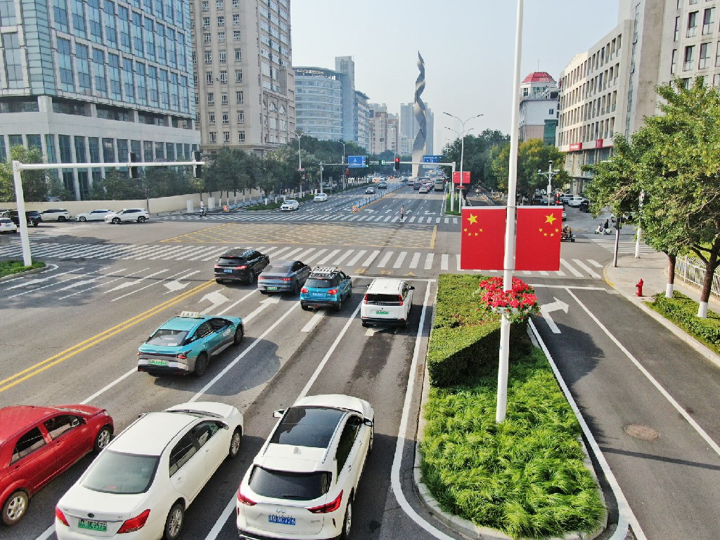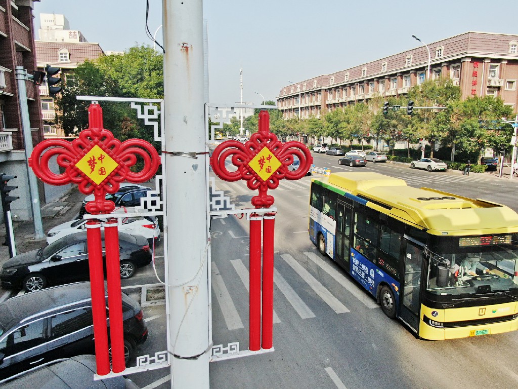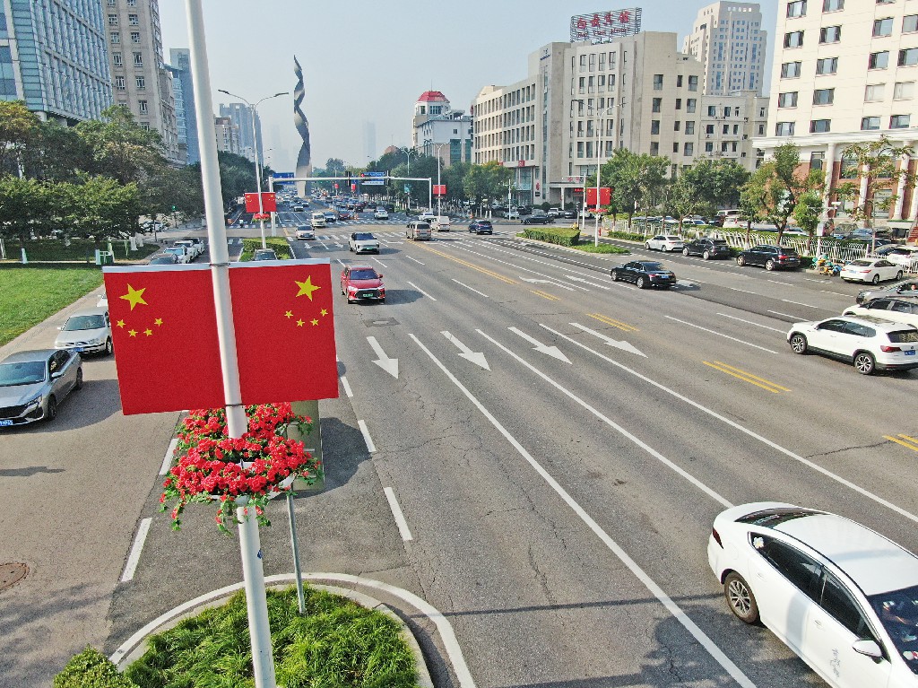 此次布置覆盖新区核心交通线路,从车水马龙的中央大道,到楼宇商铺聚集的新港二号路,处处洋溢着喜庆气息。