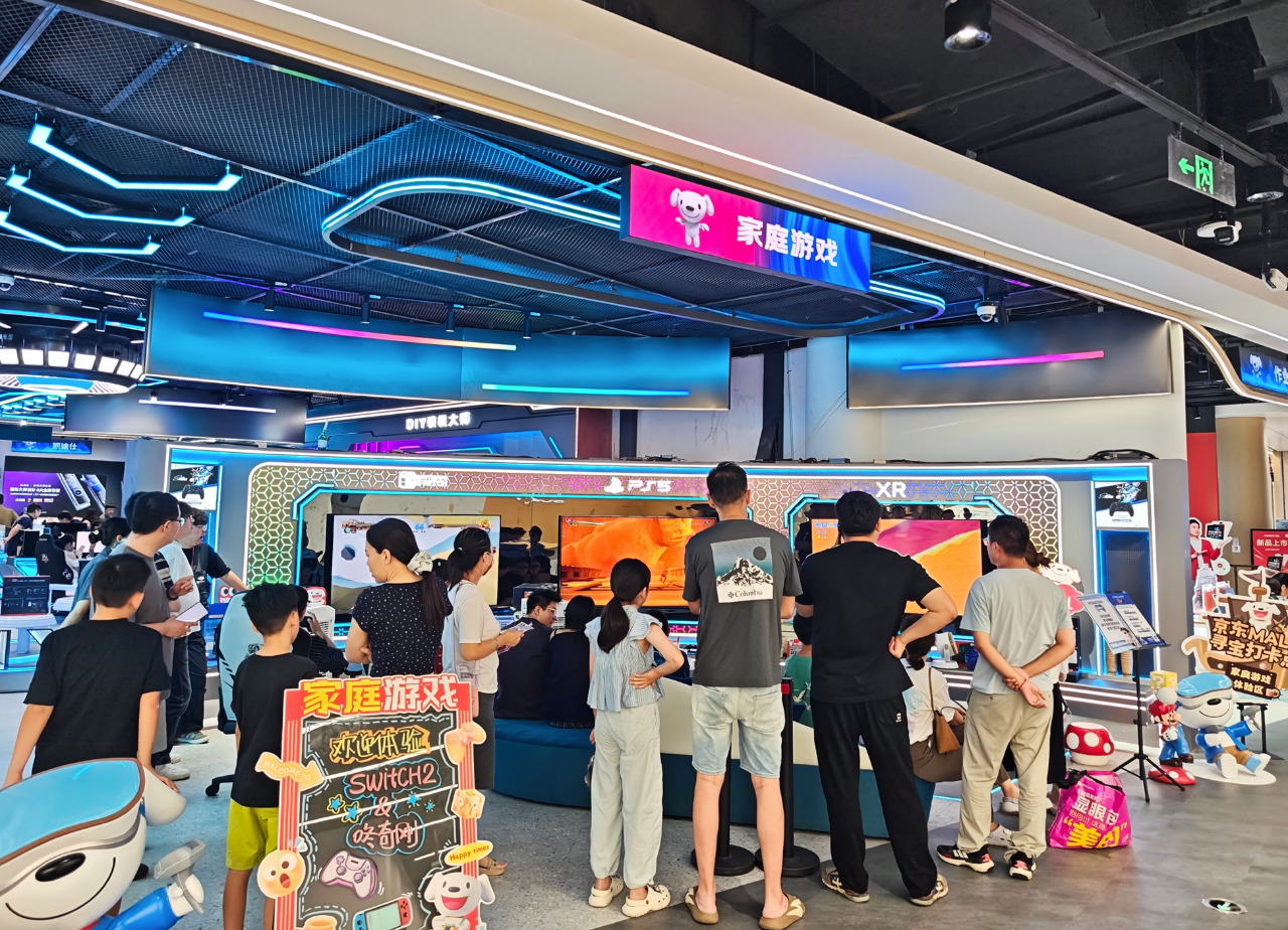 走进店内,兼具时尚感与科技感的布局令人眼前一亮。这里打破了传统卖场的陈列模式,以“场景即卖场”为理念,打造了电竞游戏区、家庭游戏体验区、美妆个护体验区、黑胶体验区等众多沉浸式主题场景体验区,现场更有家庭游戏体验官、咖啡体验官、美妆时尚顾问、烘焙艺术大师等众多专业工作人员提供全程指导和贴心服务。