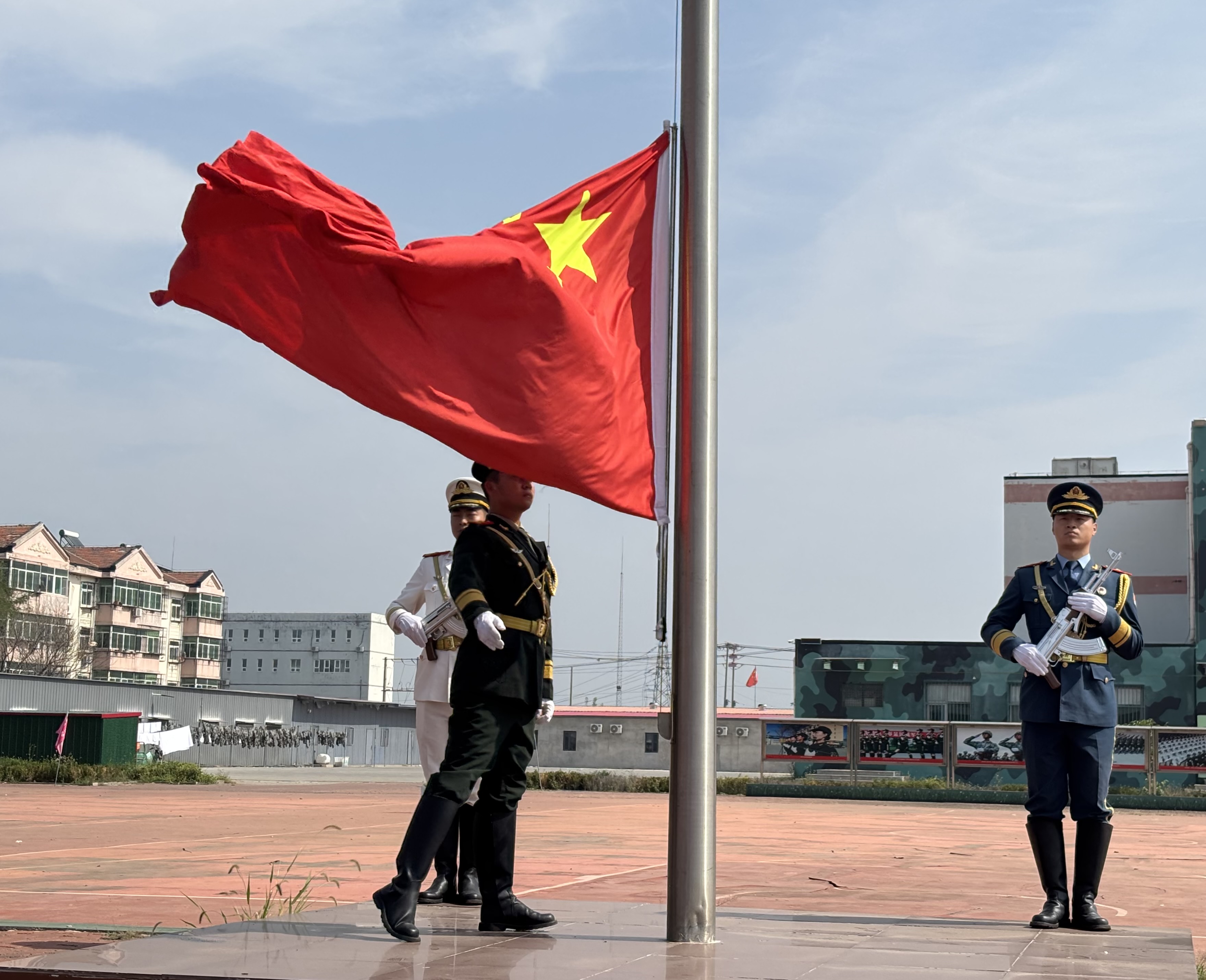 走进基地,孩子们通过入营报到、分配宿舍、换发军装等环节,完成了从“家庭孩子”到“小战士”的身份转变,纪律感与荣誉感在心中悄然萌芽。活动在庄严的升旗仪式中拉开帷幕。原三军仪仗队和天安门国旗护卫班成员组成的教官团队,迈着整齐的步伐护卫国旗出场。国歌声中,五星红旗冉冉升起,全体学员肃立行礼,爱国情怀在心中激荡。随后,学员们在国旗下庄严宣誓,将“爱国”二字融入血脉。