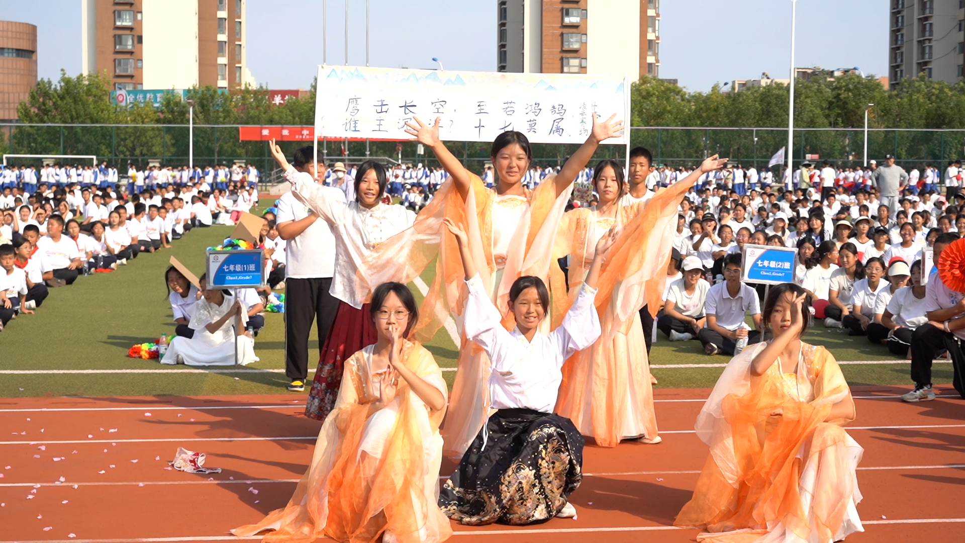 9月29日下午,激昂的《运动员进行曲》响彻校园,运动会正式拉开帷幕。伴随着铿锵的步伐,国旗队、校旗队率先登场,身姿挺拔、气势昂扬,彰显着十中学子的家国情怀与精神风貌。随后,各班依次亮相,成为开幕式上最亮眼的风景线——有的班级以灵动的队形变化展现集体智慧,有的以整齐划一的动作传递团结力量,扇子舞的柔美、啦啦操的活力、武术的刚劲更是融入展演,创意十足、精彩纷呈,赢得现场师生阵阵掌声,充分展现了初中生的蓬勃朝气。 开幕式上,裁判员代表与运动员代表分别庄严宣誓。裁判员承诺将秉持“公平、公正、公开”原则,严格执裁;运动员则誓言遵守比赛规则,发扬“更高、更快、更强”的体育精神,赛出风格、赛出水平。大港十中校长杨占利在致辞中表示:“运动会是展示同学们青春风采的重要平台,希望大家在竞技中收获成长,在运动中体验快乐,让拼搏成为青春最鲜明的底色。”