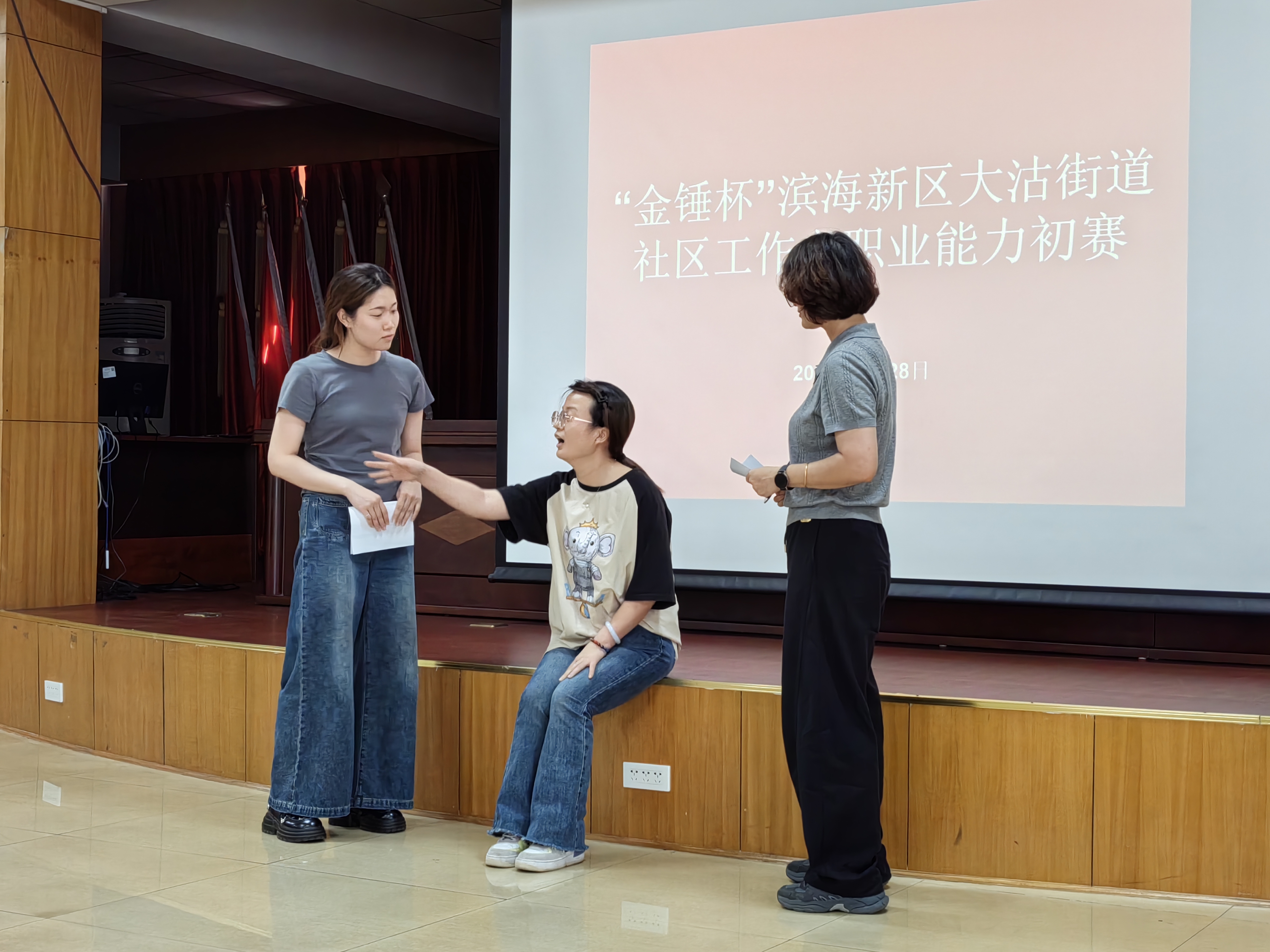 各街镇初赛多设知识竞答和特色展示环节。知识竞答聚焦社工开展工作的“基本功”,涵盖习近平总书记关于社会工作、基层治理的重要论述,社区治理相关法律法规、政策文件,社区工作专业知识等,从专业理论要点到日常服务规范,题目覆盖基层工作核心领域;特色展示多围绕小区外墙皮脱落、邻里纠纷、空巢老人服务等社区治理中的真实难题,参赛选手们用生动的语言、巧妙的应对策略,将社工的专业智慧、沟通技巧以及饱含的服务温度展现得淋漓尽致,赢得了现场阵阵掌声。“此次大赛为社区工作者搭建了一个展示自我、交流互鉴的专业平台,不仅激发了社区工作者提升专业能力的积极性,更推动了他们在基层治理实践中勇担使命的决心。”区委社会工作部相关负责人说。