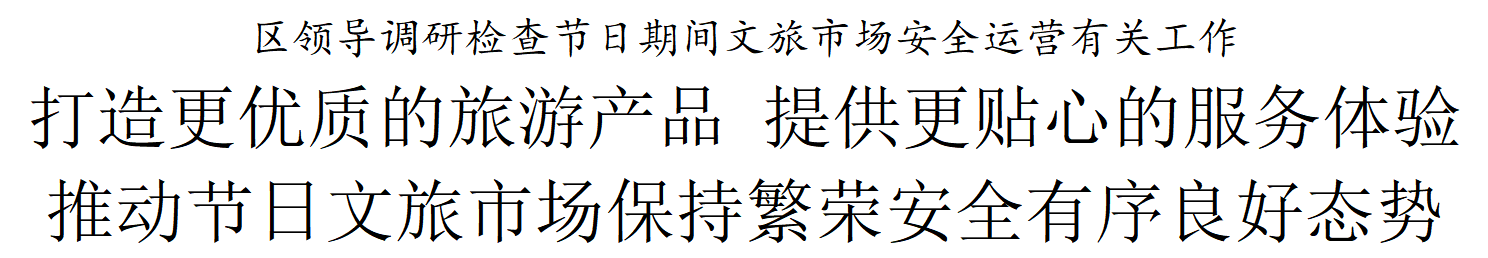 单泽峰在调研中强调,各单位、各部门要牢固树立“群众过节、干部过关”意识,压紧压实属地管理责任、部门监管责任和企业主体责任,始终保持“时时放心不下”的责任感,进一步做好节日期间各项安全防范工作,优化服务保障,守牢安全底线,努力营造平安祥和有序的节日环境。要聚焦群众多样化个性化消费需求,进一步优化文旅服务供给,丰富特色文旅活动和消费场景,以细致周到的服务让游客玩得放心、吃得安心、游得舒心。