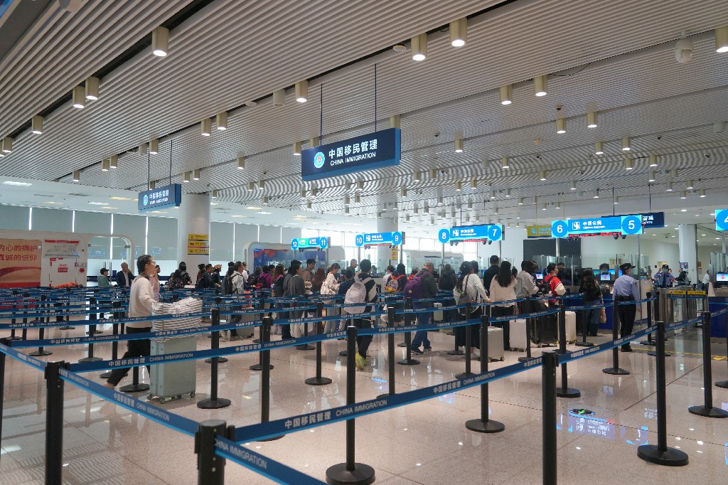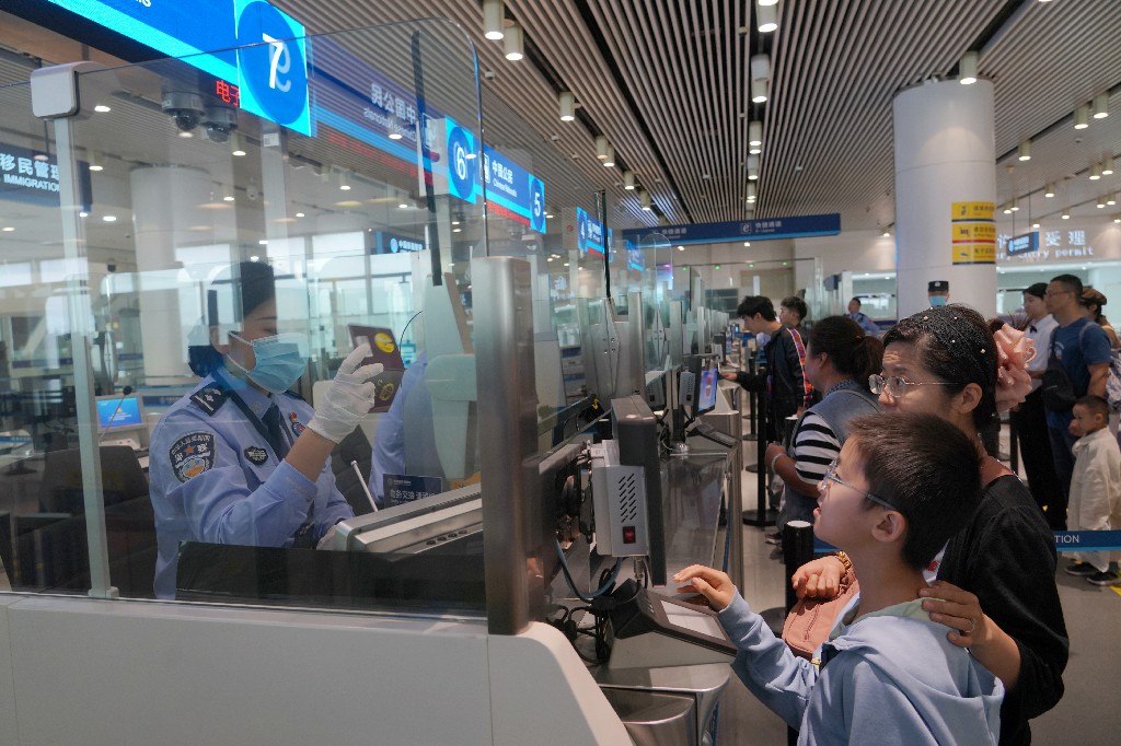 东疆边检站温馨提醒广大出入境旅客,国庆中秋假期接近尾声,请及时关注口岸客流变化和通关情况,合理规划行程,仔细检查出入境证件签证是否有效。通关过程中如遇困难,可随时向现场执勤民警寻求帮助。(东疆边检站供图)