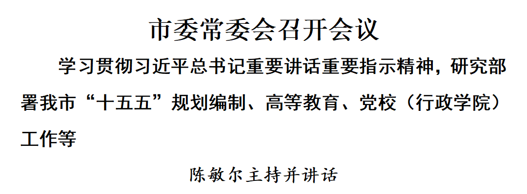 会议强调,要深入学习贯彻习近平总书记对党校(行政学院)工作作出的重要指示精神,落实全国党校(行政学院)工作会议部署,坚持党校姓党,牢记党校初心,坚持正确办学方向,找准党校工作与中心任务的结合点、切入点、着力点,自觉服务好工作大局。深化党校教学改革,突出党的理论教育、党性教育和履职能力培训,加强党的创新理论研究阐释,更好为党育才、为党献策。坚持从严治校、质量立校,加强干部和教师队伍建设,加强对学员的管理监督,弘扬优良学风,不断提高办学治校水平。全市各级党委要加强组织领导,强化支持保障,压实工作责任,推动新时代党校(行政学院)事业高质量发展。