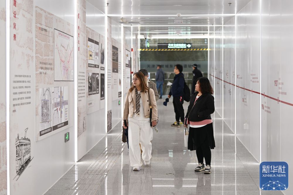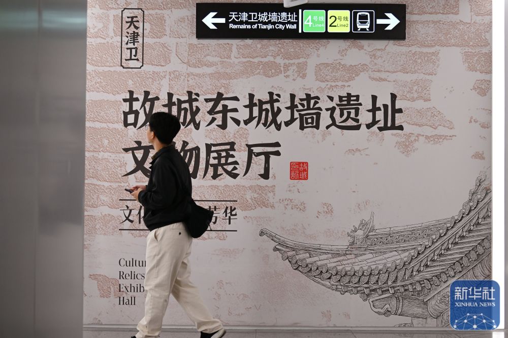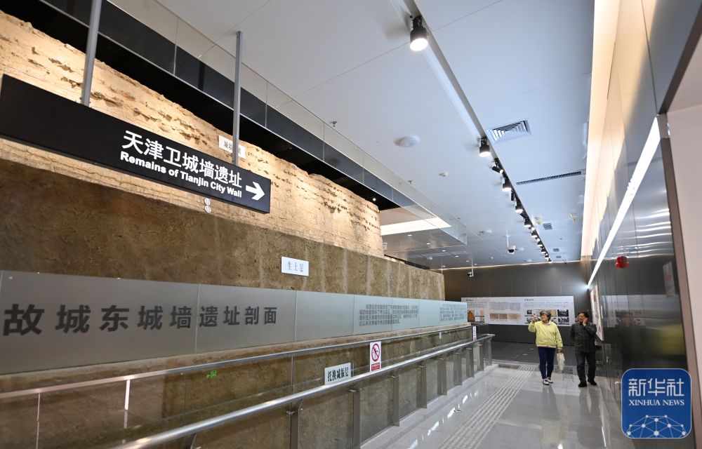 近日,位于天津地铁4号线东南角站的天津卫故城东城墙遗址文物展厅正式开放,展厅内21米长的城墙遗址层次分明,让乘客在出行时也能了解天津历史。