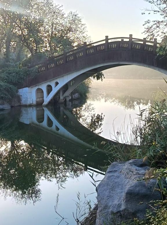 作为滨城核心区最具历史文化底蕴的公园,河滨公园不仅有传统南方园林风格的南园,古朴典雅的湖畔主景“湖濒楼”,更有80余种、2万余株树木,众多动物在此栖居,各类植物于此生长。这些历经沧桑的建筑与林木,见证了滨城从一个小渔村发展为现代化开放都市的嬗变。站在古老石拱桥上极目远眺,可见对岸现代都市轮廓在晨雾中若隐若现,与园内传统景致形成时空对话。