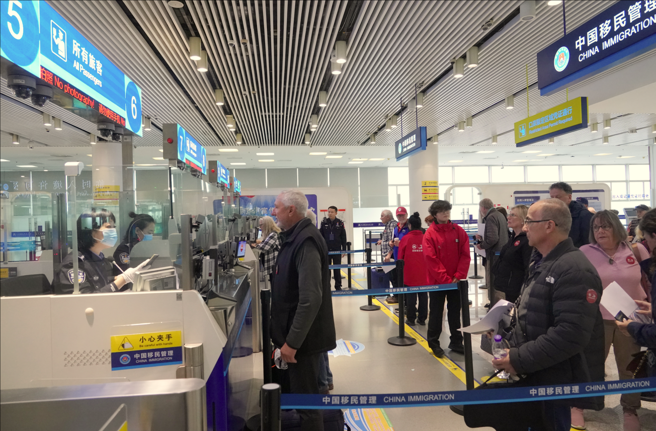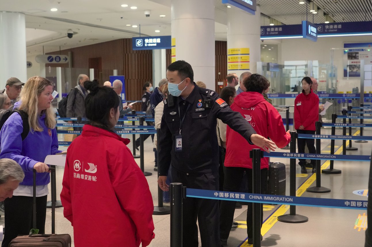 随着国家移民管理局外国旅游团乘坐邮轮入境免签和进一步放宽优化外国人过境免签等政策的全面实施,越来越多的外籍旅客选择乘坐邮轮开启中国之旅。东疆边检站在国家移民管理局和天津边检总站指导下,成功保障首艘悬挂五星红旗的豪华邮轮“招商伊敦”号邮轮开辟“境内+境外”航线,在我国邮轮产业发展中具有里程碑式的意义。下一步,东疆边检站还将继续聚焦邮轮产业发展和港产城融合发展,持续优化邮轮口岸通关流程,为属地高质量发展贡献更多移民管理力量。(东疆边检站供图)