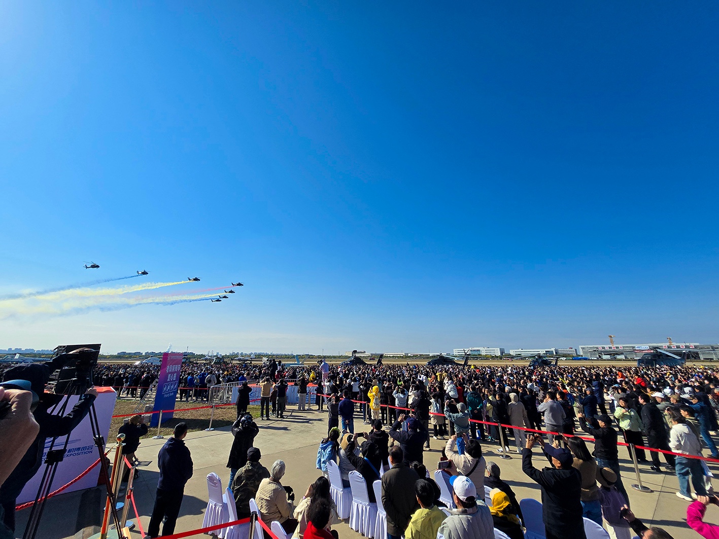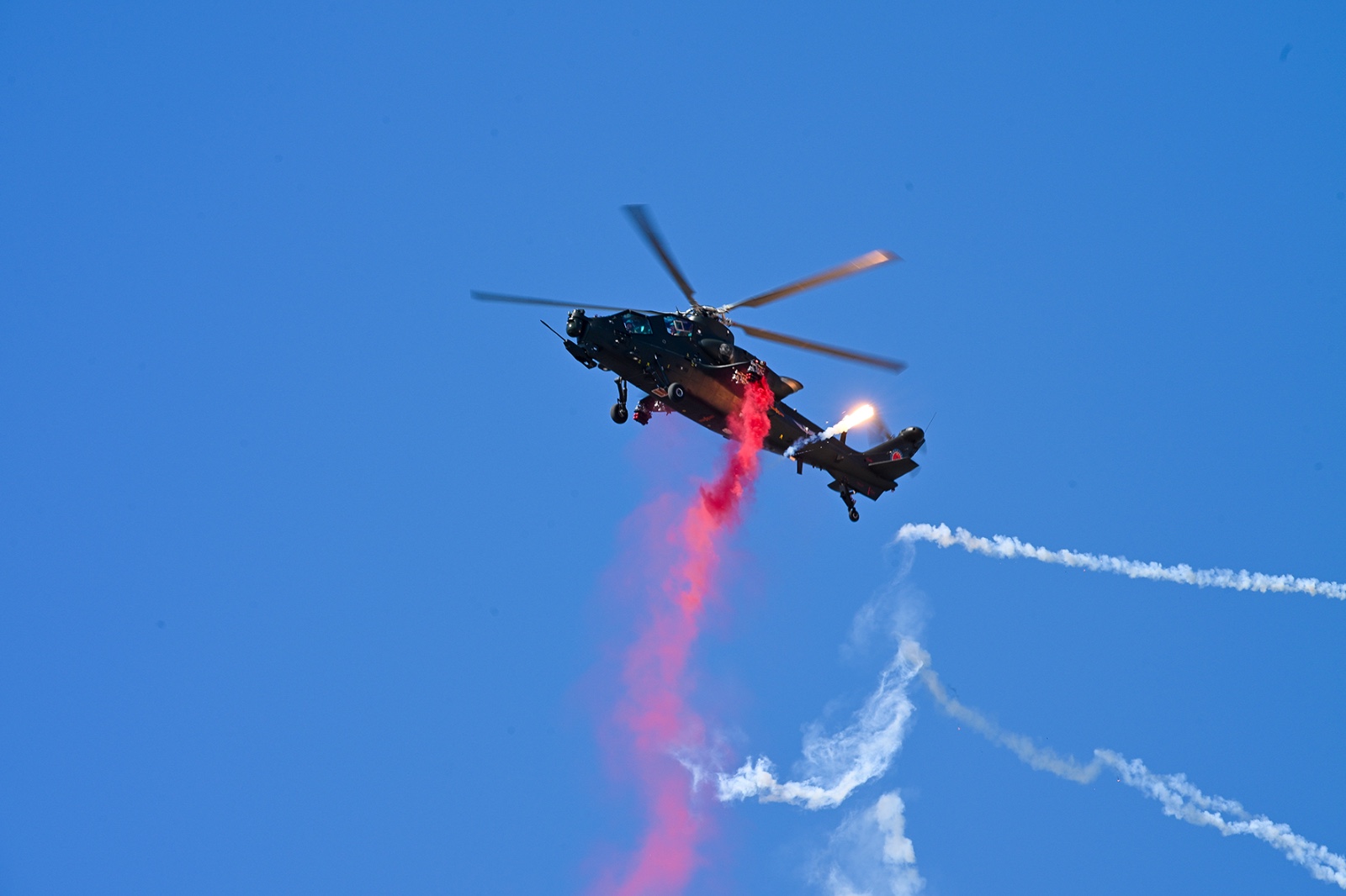 飞行表演作为直博会的标志性环节,由陆军“风雷”飞行表演队领衔。本届陆军飞行表演由直-10、直-20、直-20T等现役主力机型参演,包括七机通场、双机对冲、四机开花等高难度编队动作,以及快速营救、绕点回转等实战应用演示,为观众呈现了一场融合技术、艺术与力量的空中盛宴,全面展示了国产直升机的卓越性能和飞行员的精湛技术。