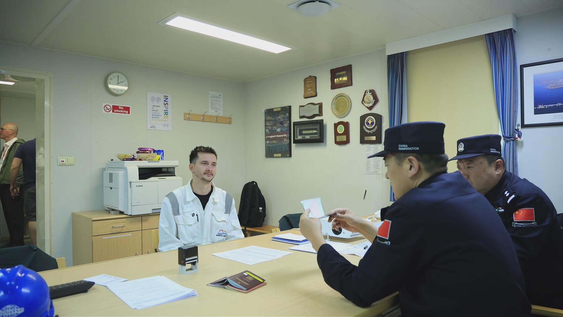 为确保能源物资高效接卸,大港出入境边防检查站提前制定专项勤务预案,开通能源保供“绿色通道”,待船舶靠泊后,边检民警立即登轮开展检查并办理通关手续,确保船舶“零延时”靠港、“零等待”作业,实现重要能源物资“随到随卸”,全力保障接卸流程顺畅。
