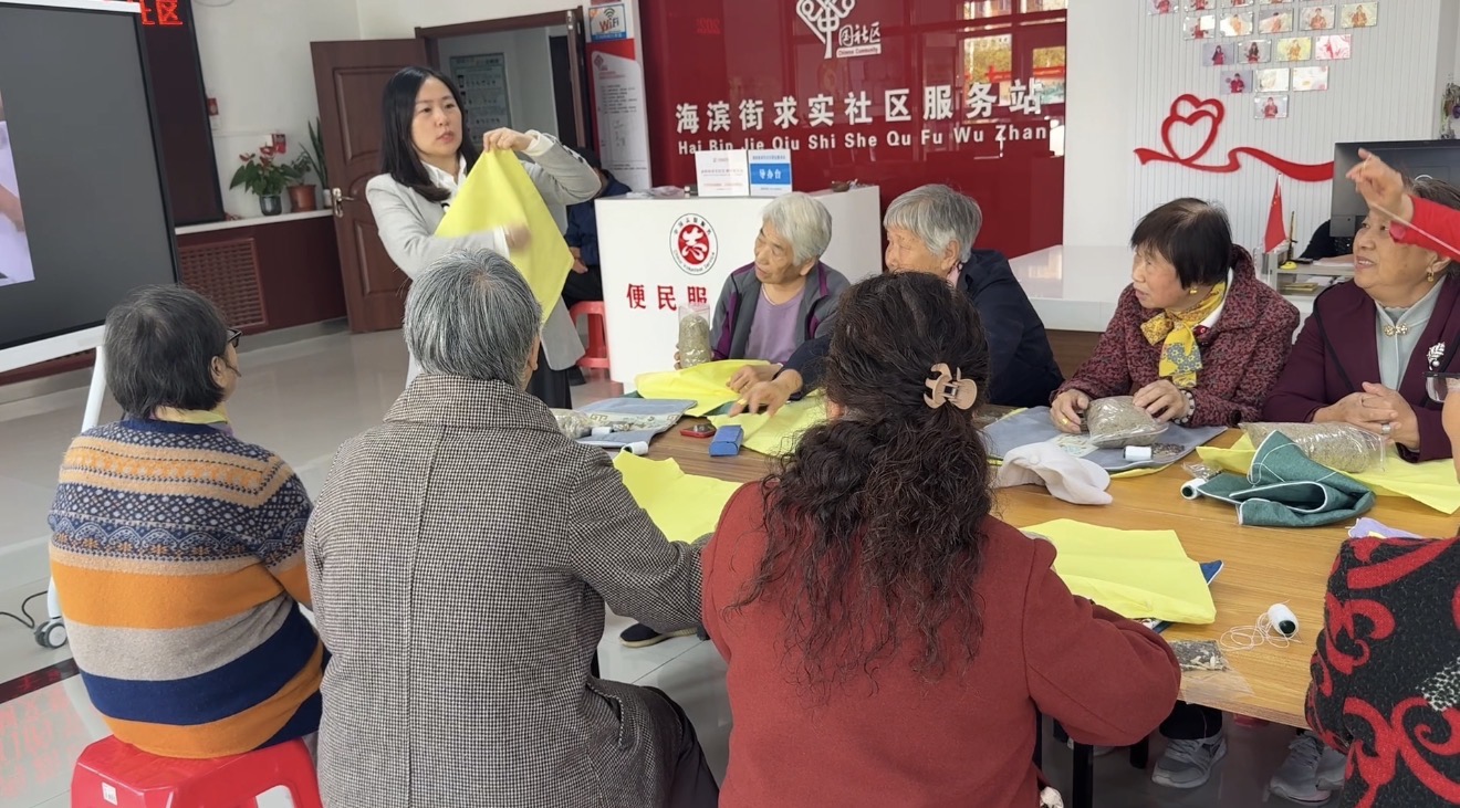 津滨网讯(记者 张爱萌 通讯员 孙书兰 摄影报道)为弘扬中华传统美德,传递对社区老年人的关怀,10月22日,海滨街道求实社区开展“巧手制艾垫 重阳暖耆心”主题活动,近30位社区老人欢聚一堂,在一针一线中感受传统节日的温暖。