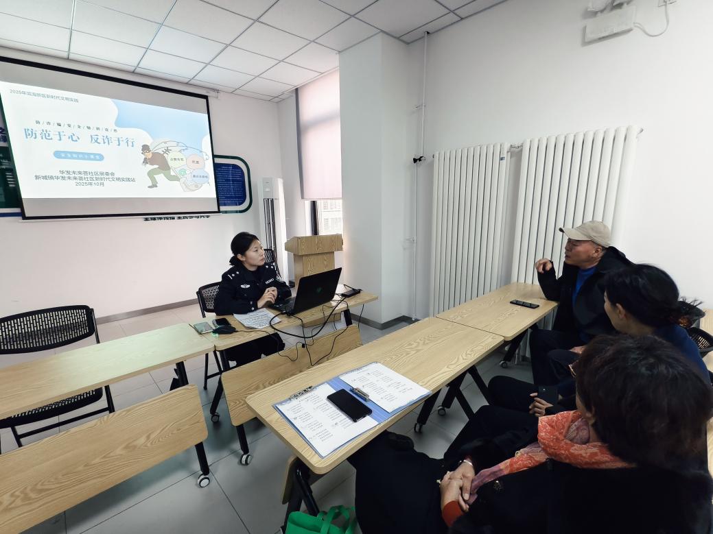 津滨网讯(记者 张玮 摄影报道)为进一步提升社区居民的防诈骗意识,近日,新城镇华发未来荟社区开展“防范于心 反诈于行”主题宣传活动。活动特邀新城派出所民警到场,为社区居民带来了一堂生动而深刻的防诈知识课。