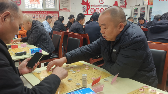 棋盘之上,落子声清脆,每一步都暗藏策略与巧思,既有“老将深宫保平安”的稳健防守,也有“弃车夺势定乾坤”的果断进攻,精彩对局引得观赛群众阵阵赞叹。一位来自薛卫台村的棋手说:“这样的比赛很有意义,既能和棋友交流,又能感受到传统文化的魅力!每年就盼着这场比赛了。”