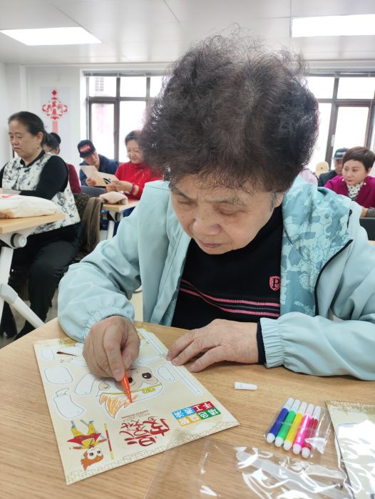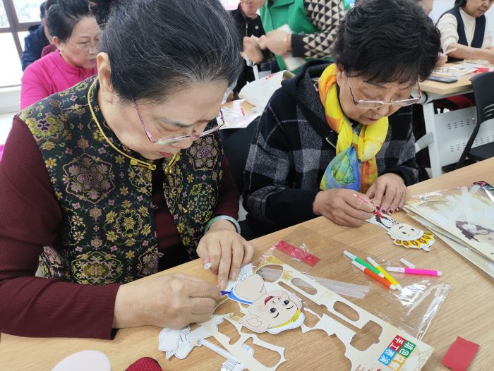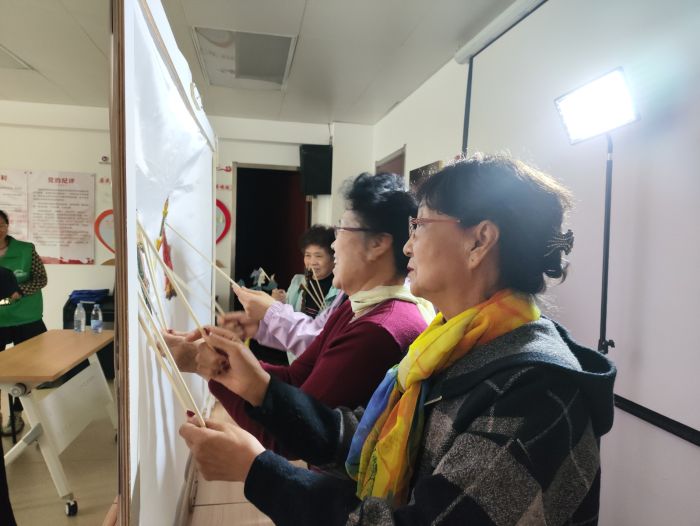 活动现场还设置了皮影制作体验环节,老人们可以亲手制作属于自己的皮影角色。从勾勒轮廓到上色装饰,每一个步骤都充满了乐趣,老人们互相交流技巧,分享创作心得,现场洋溢着温馨和谐的氛围。活动最后,大家一起展示自己制作的皮影作品,合影留念,用镜头记录下这一充满文化韵味的重阳时刻。