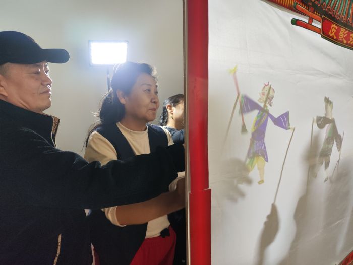 讲座结束后,皮影创意展演环节将活动推向了高潮。工作人员邀请老人们上台,共同演绎《西游记》故事。尽管是初次尝试,老人们却表现得异常投入。在工作人员的悉心指导下,老人们兴致盎然地拿起皮影道具,学习操纵技巧,从简单的抬手、转身,到配合剧情进行动作设计,大家互相交流、切磋,沉浸在亲手演绎皮影戏的乐趣中。这一刻,老人们仿佛回到了儿时观看皮影戏的欢乐时光,现场掌声连连。“没想到皮影戏这么有意思,今天真是非常开心。”参与表演的吴奶奶高兴地说。