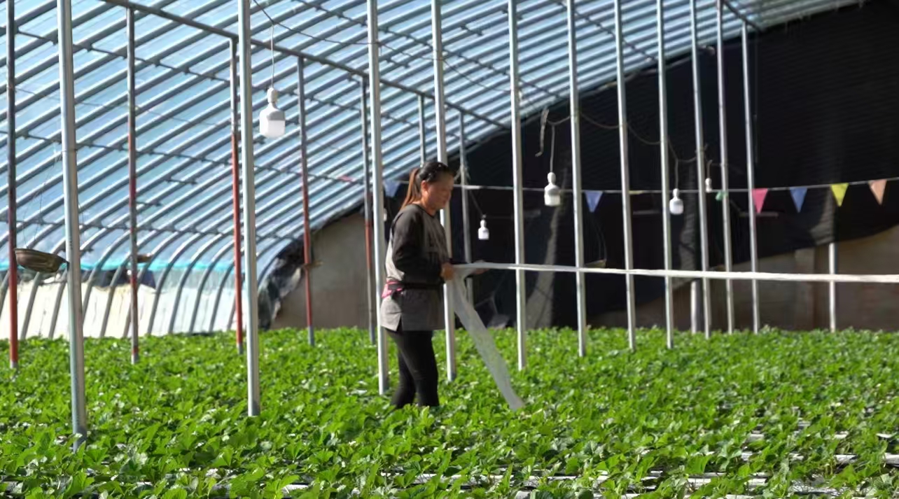 村民们正热火朝天地忙碌着。他们穿梭在草莓垄间,精心整理田垄,为草莓的丰产丰收辛勤付出。草莓种植户王芳告诉记者,今年的夏天雨水多,秋季气温比较低,草莓花期相比往年晚开了20多天,预计今年的第一批草莓将在11月20日左右成熟。