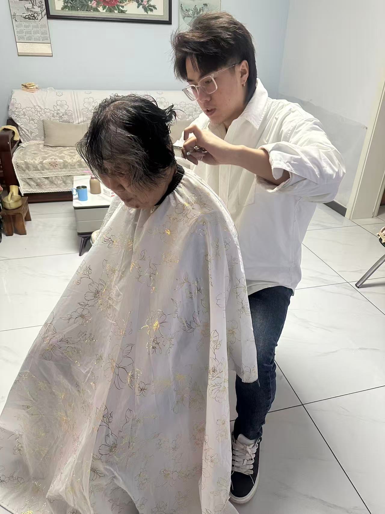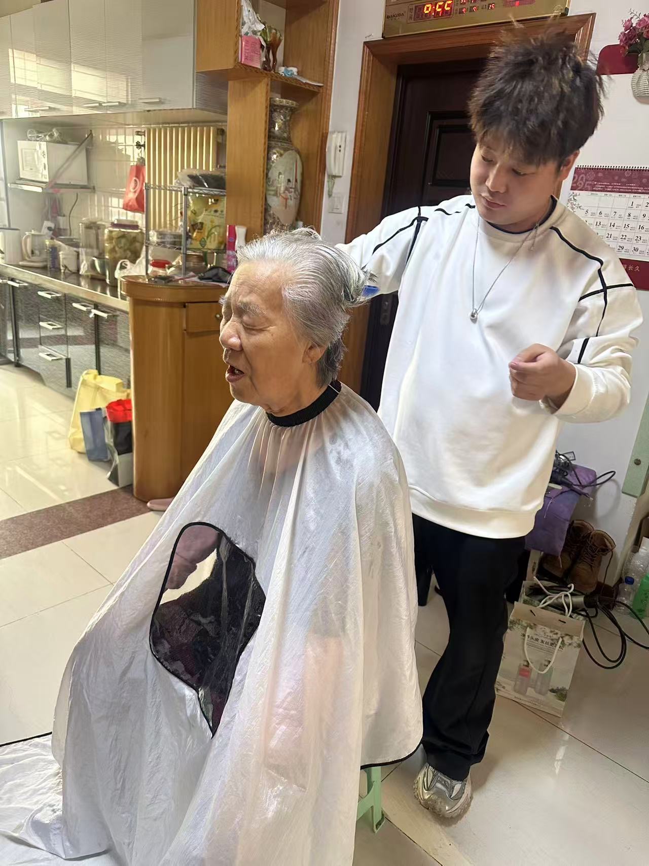 活动前期,社区通过电话联系与上门走访,精准摸排老人的理发需求,并提前与理发师团队商定服务时间与流程。活动当天,理发师们带上专业工具,在社区工作人员的引导下逐户上门。服务过程中,理发师们耐心倾听老人对发型的要求,细心修剪。理发间隙,大家还主动与老人聊天谈心、送上节日问候,在轻松氛围中完成一次次“形象焕新”。“年纪大了出门不容易,头发长了也没法打理。你们能上门来,还剪得这么精神,真是太感谢了。”刚理完发的沈阿姨对着镜子连连夸赞。