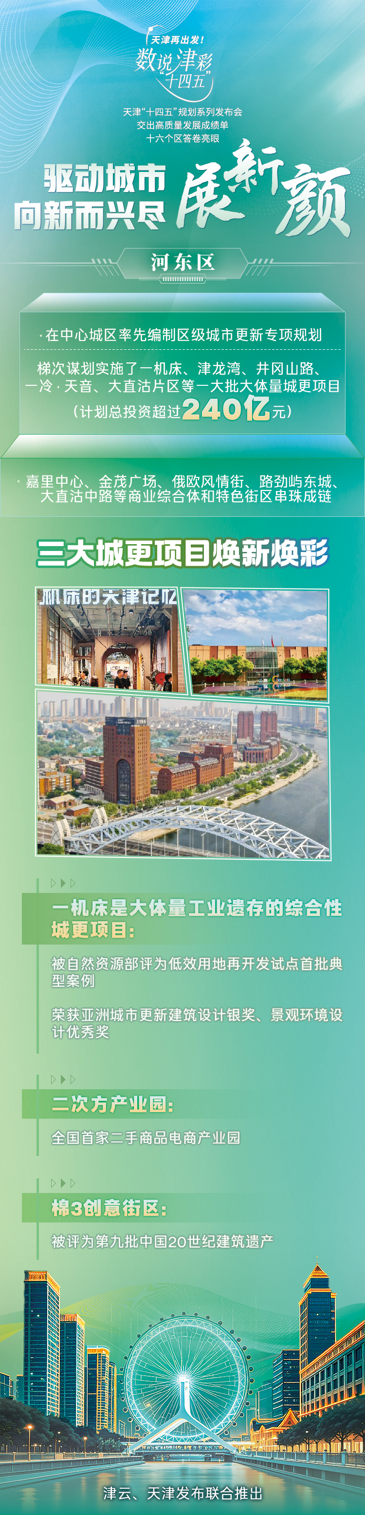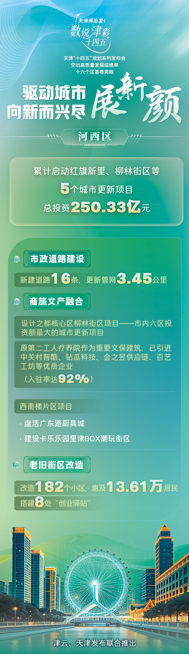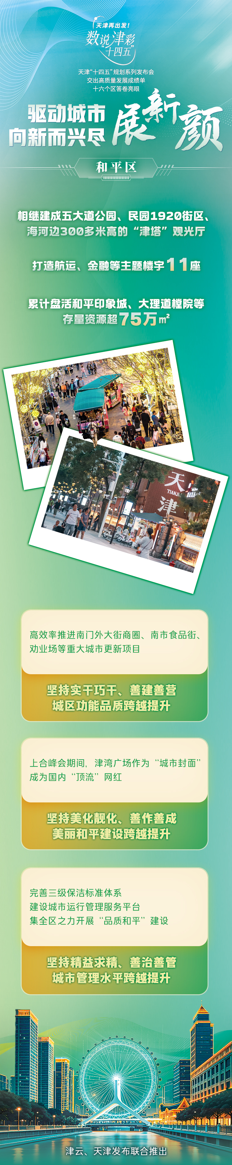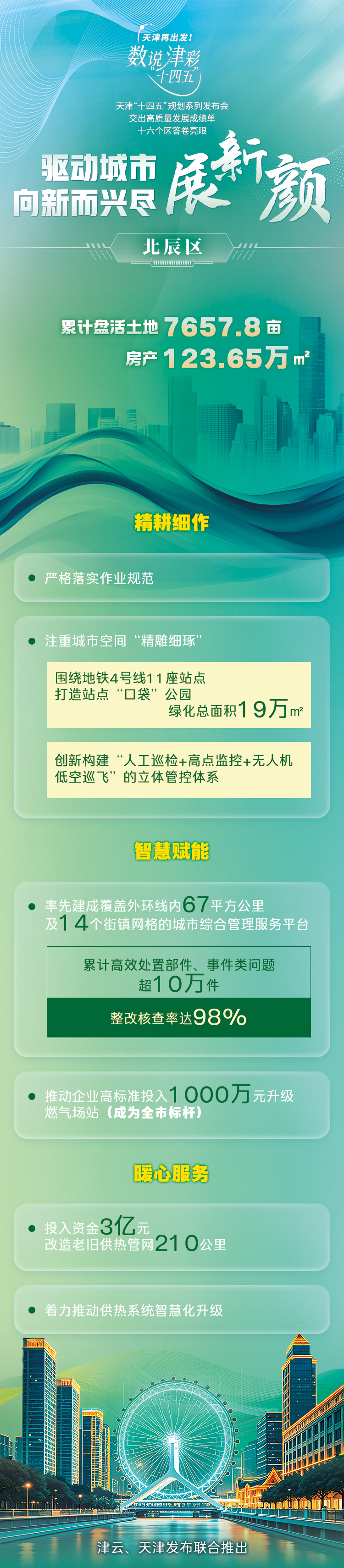 天津市坚持走内涵式发展道路,在盘活存量、做优增量、提升质量中加快培育新动能、更新旧动能。今天让我们一起来看“十四五”期间,天津各区在在提升城市治理方面的亮眼答卷!