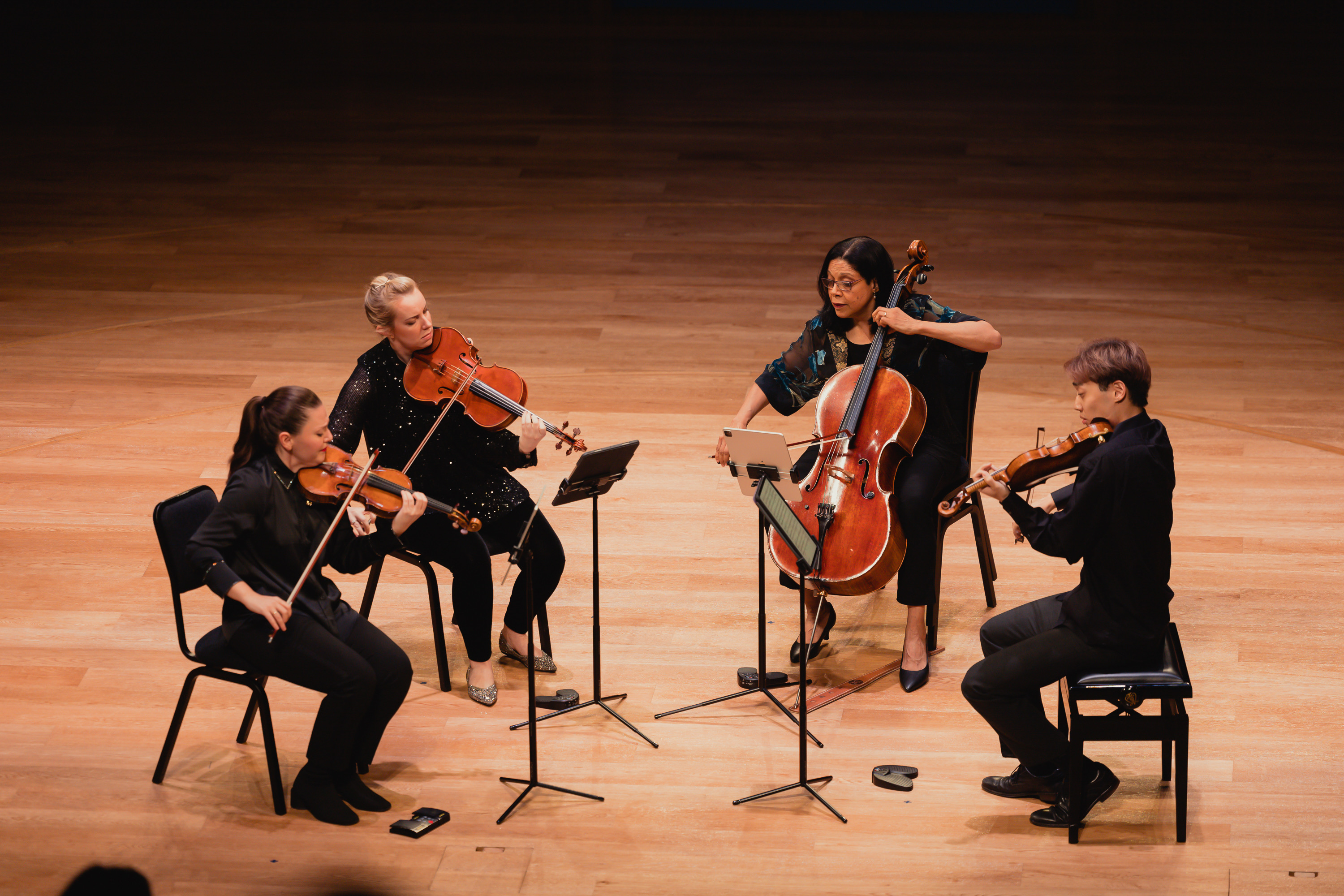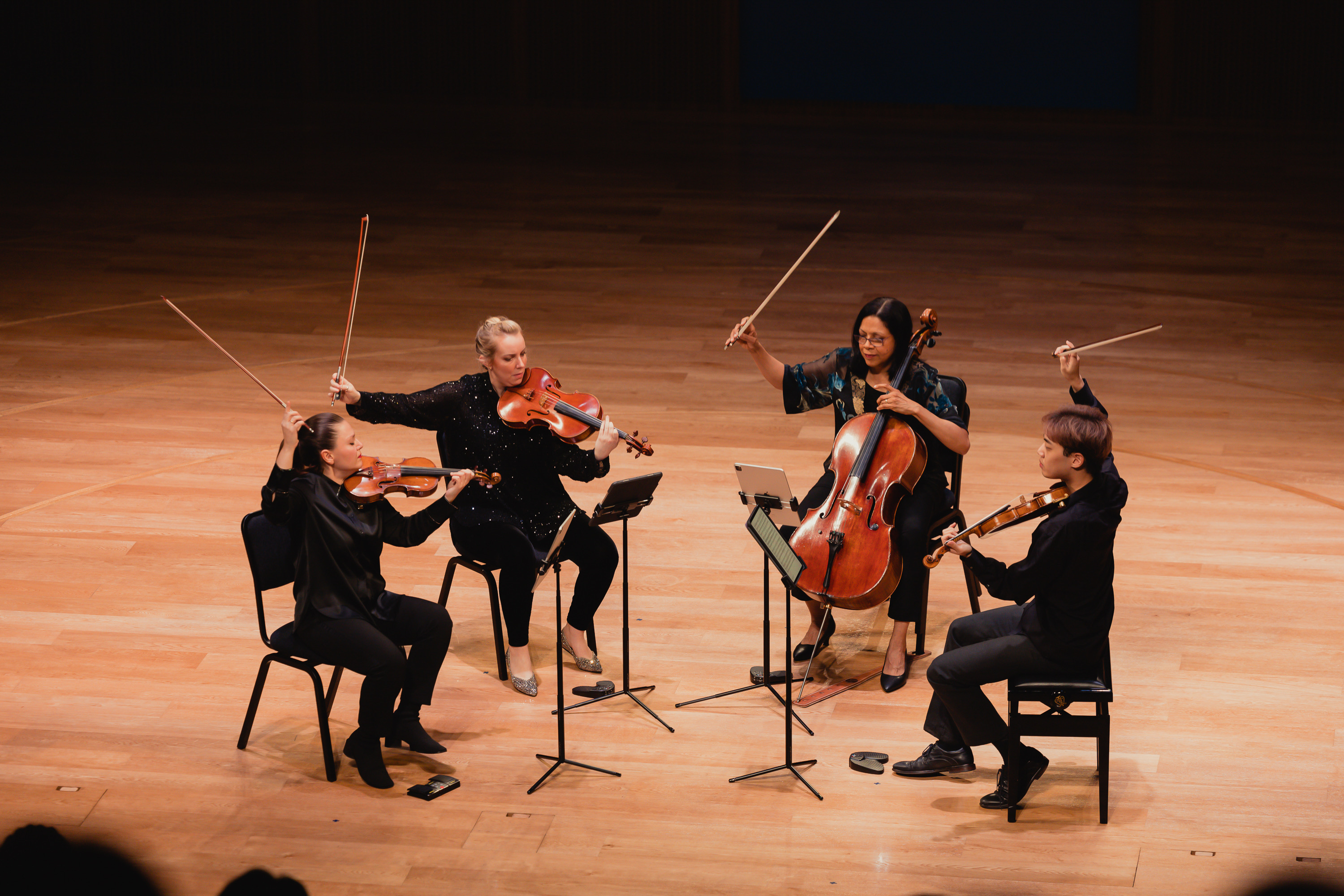 据了解,茱莉亚弦乐四重奏成立80年来历经成员更迭,始终活跃于国际室内乐舞台。其现任成员均为纽约茱莉亚学院弦乐及室内乐教师,也是国际乐坛知名演奏家。他们不仅代表了纽约茱莉亚学院的艺术及教学高度,还通过巡演、大师课以及每年5月在纽约举办的“茱莉亚弦乐四重奏研讨会”持续推动室内乐艺术的全球传播。而此次的再度来访,即是对纽约茱莉亚与天津茱莉亚之间常态化教师互访机制的延续,也将进一步实现两校顶尖教育资源的互通共享。茱莉亚弦乐四重奏成员、小提琴家傅天成告诉记者,作为一名在德国出生长大的华人,回到中国也让他更有了亲切之感:“我的老家就是北方,所以我来到天津感觉非常亲切,很开心有机会来到中国巡演。作为四重奏的新成员,对我来说,延续茱莉亚弦乐四重奏的传统,传承所有前辈们的精神是非常重要的。但同样让人兴奋的是,我们四个人可以一起探索属于我们的独特声音,呈现让大家眼前一亮的曲目。”