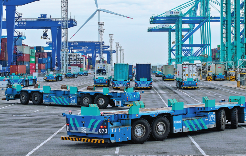 智能水平运输机器人行驶在天津港 第二集装箱码头(2025年6月19日摄) 赵子硕摄 / 《瞭望》