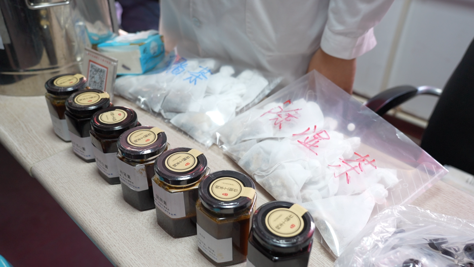活动在社区居委会内暖意融融的氛围中拉开帷幕。现场设立的膏方及精品饮片展示区吸引了众多居民驻足。医院自制的冬季滋补膏、健脾膏等琳琅满目,配以详实的功效说明;用中药材精心拼制的药材画则让居民在欣赏艺术的同时,了解了中药知识。一旁的代茶饮品尝区人气十足,居民们手捧热腾腾的调脂茶、除湿茶,在品尝中感受中医药的日常效用。“平时自己也关注养生,但了解不深。今天这个活动有展示、有讲解、还能品尝,非常直观!”一位社区居民兴奋地表示,这种全方位的体验让她近距离感受到了中医的魅力。