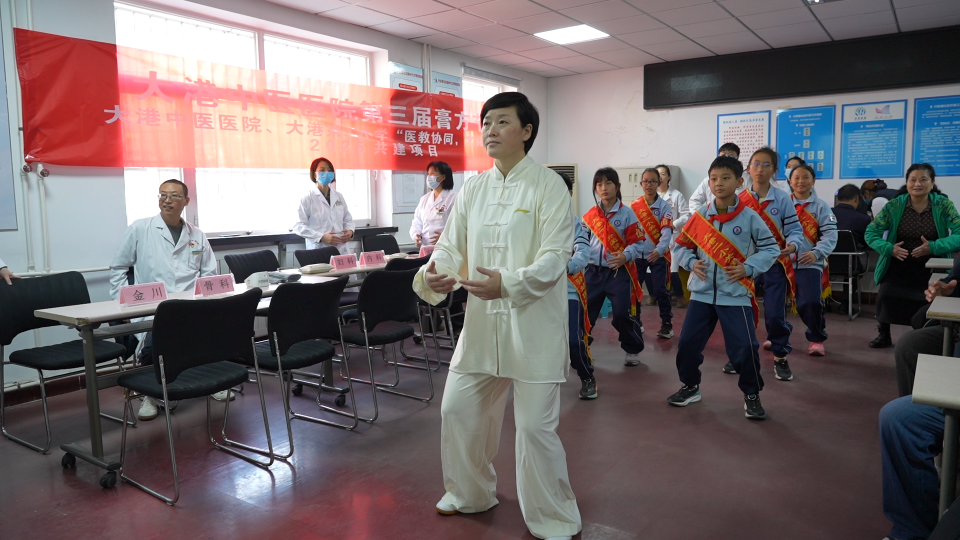 除了静态展示,动静结合是本次活动的一大亮点。在悠扬的音乐中,大港中医医院传统保健队的医生带领社区居民和滨海新区大港第二小学学生代表,集体演练八段锦和手指井穴操,动作整齐划一,成为现场一道亮丽的风景线。带队医生介绍,这些简单易学的保健操非常适合冬季在室内锻炼,能帮助大家活络筋骨,养护身体正气。