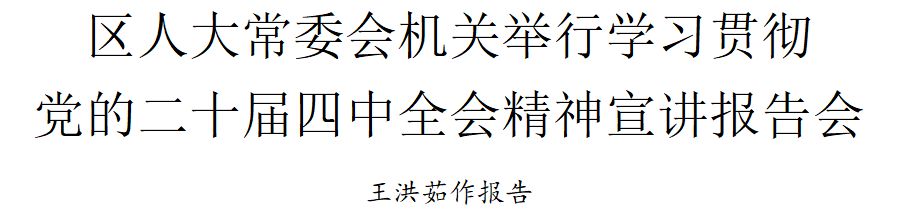 津滨网讯(记者 路熙娜)11月20日,区委宣讲团成员,区人大常委会党组书记、主任王洪茹为区人大常委会机关全体党员干部作学习贯彻党的二十届四中全会精神宣讲报告。区人大常委会党组成员、副主任宫丽艳主持,党组成员、副主任窦广春、蒋凤刚出席。