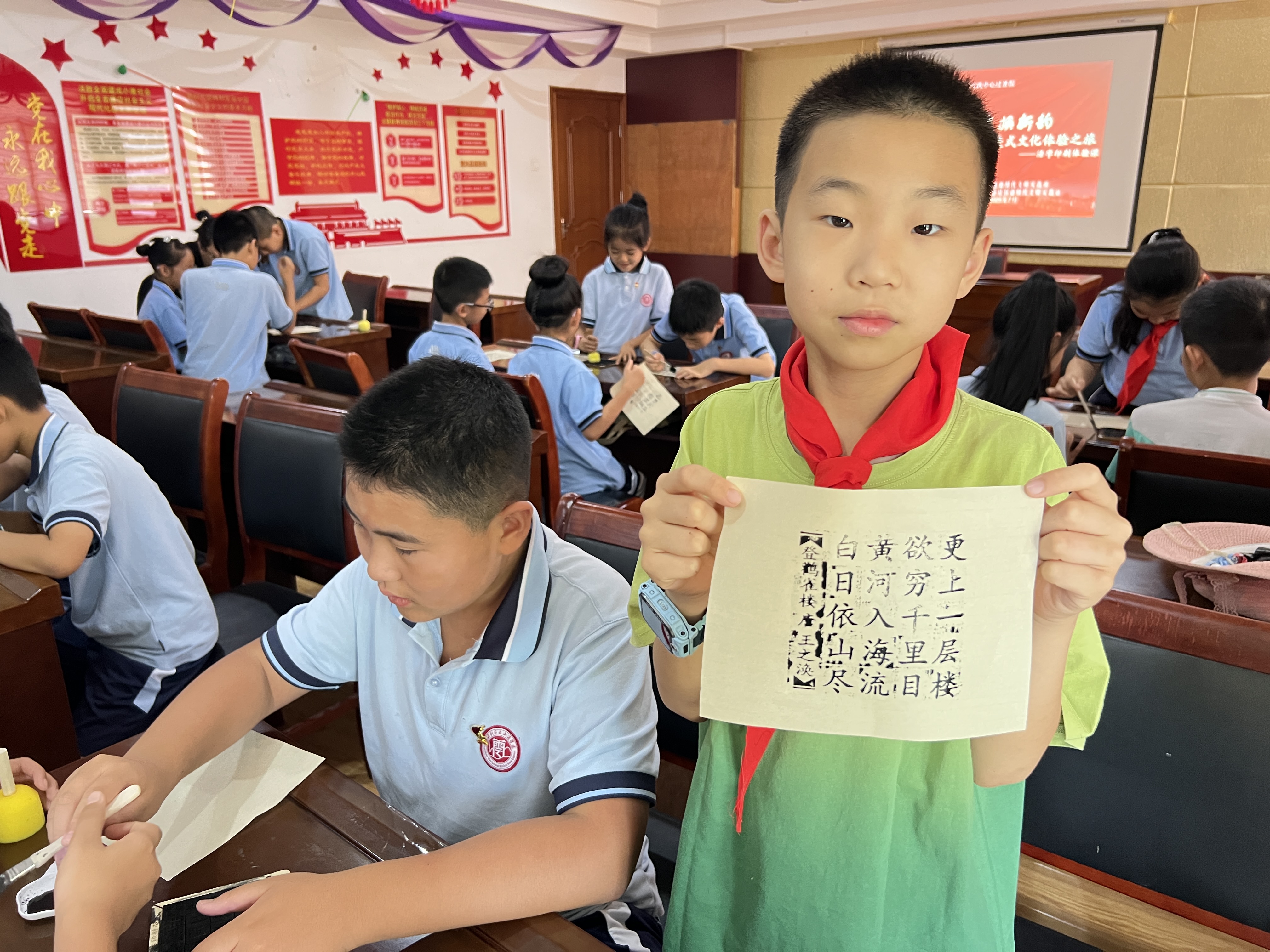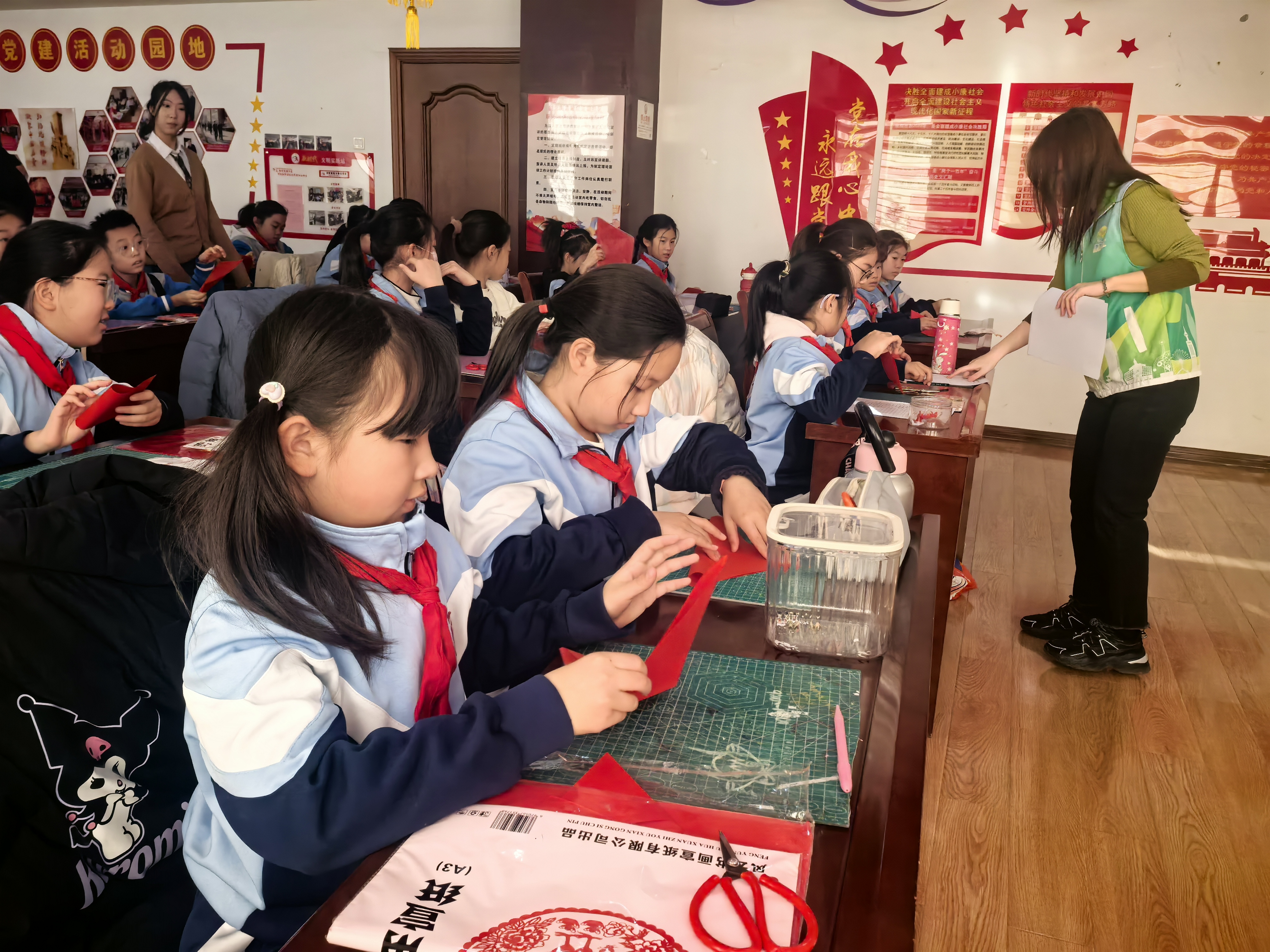 “巧手剪窗花,欢乐迎新春”活动中,孩子们在非遗传承人的带领下,开启了一场与千年剪纸艺术的对话。小小的剪刀在红纸间游走,转眼间,栩栩如生的图案便跃然纸上。孩子们剪出的不仅是精美的图案,更是对静心、专注的匠人精神最初的领悟。这项活动让古老的剪纸艺术在孩子们心中生根发芽,成为连接古今的文化纽带。在“活字换新韵”活动中,少年们化身“小小毕昇”,在布满古旧铅字的字盘间,小心翼翼地寻字、排版。当一首首千古名句、一句句新年祝福带着淡淡墨香清晰地呈现在纸上时,孩子们的脸上写满了惊喜与自豪。亲手完成的“印刷奇迹”,让书本上冰冷的“四大发明”变得可触可感。