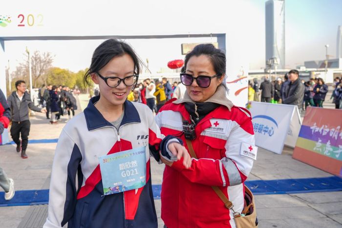赛场之上,除了奋力拼搏的学子,还有一群默默守护的身影格外动人:天津港保税区蓝天救援队的队员们身着专业装备,随时准备应对突发状况,挺拔身姿成为赛场安全的坚实防线;志愿者们守候在赛道沿线,递水、补给、引导方向,温暖的笑容与贴心的服务,为赛事注入满满温情;来自天津市红十字会和泰达医院的医疗团队则为赛事提供医疗保障,为学子们的热血拼搏保驾护航。
