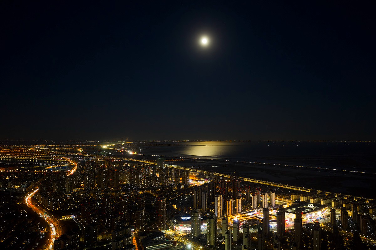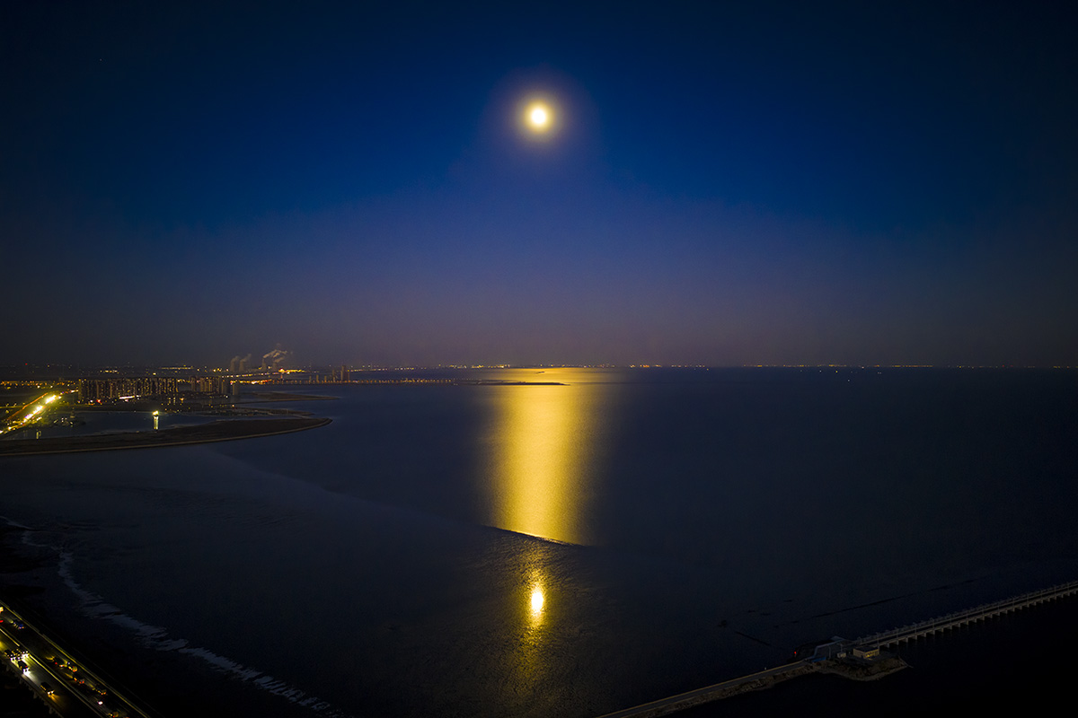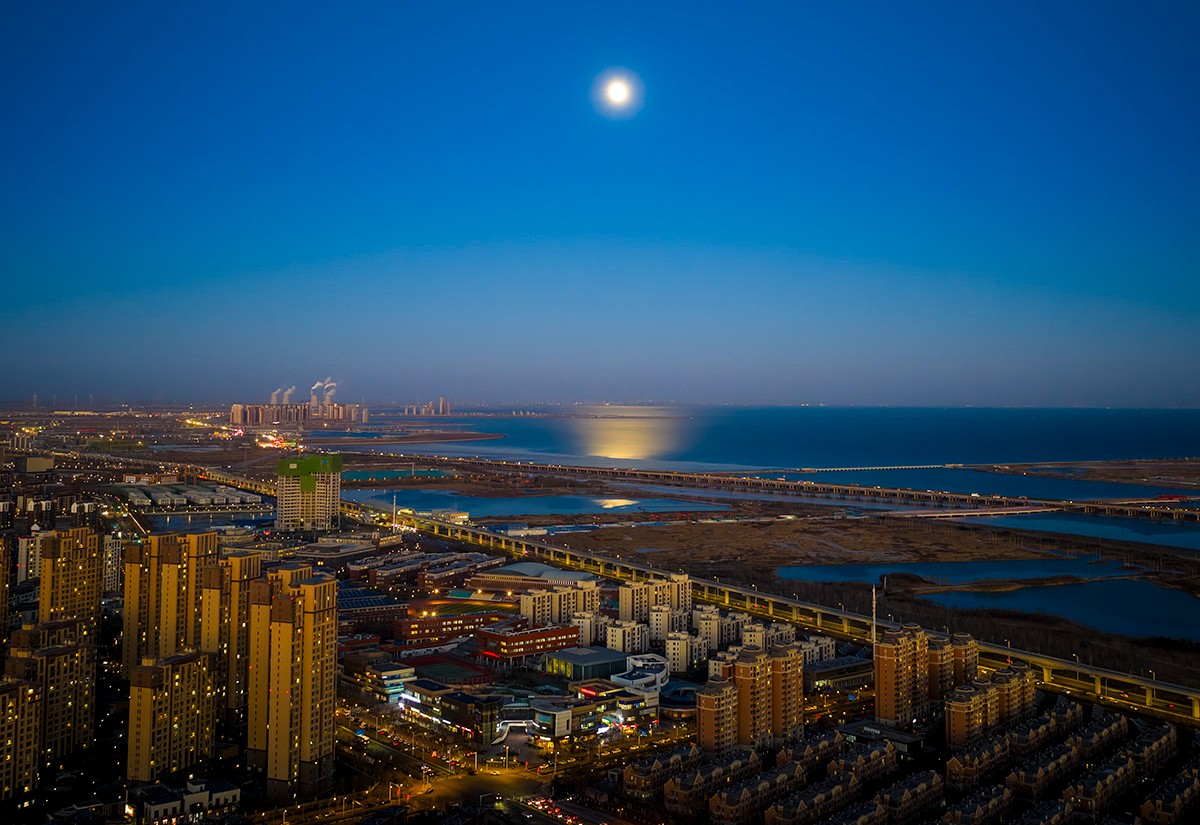 津滨网讯(记者 贾磊 摄影报道)12月4日傍晚,2025年最后一轮超级月亮在滨海新区夜空登场,滨海新区中新天津生态城东部沿海迎来别样景致。一轮“超级月亮”从海平面缓缓升起,银辉倾泻海面。与此同时,太阳已然落山,余晖却将西边天际线染成暖橙色,与蓝天交织出柔美渐变;落日余晖与海上明月隔空相映,让生态城的夜晚景致格外动人。