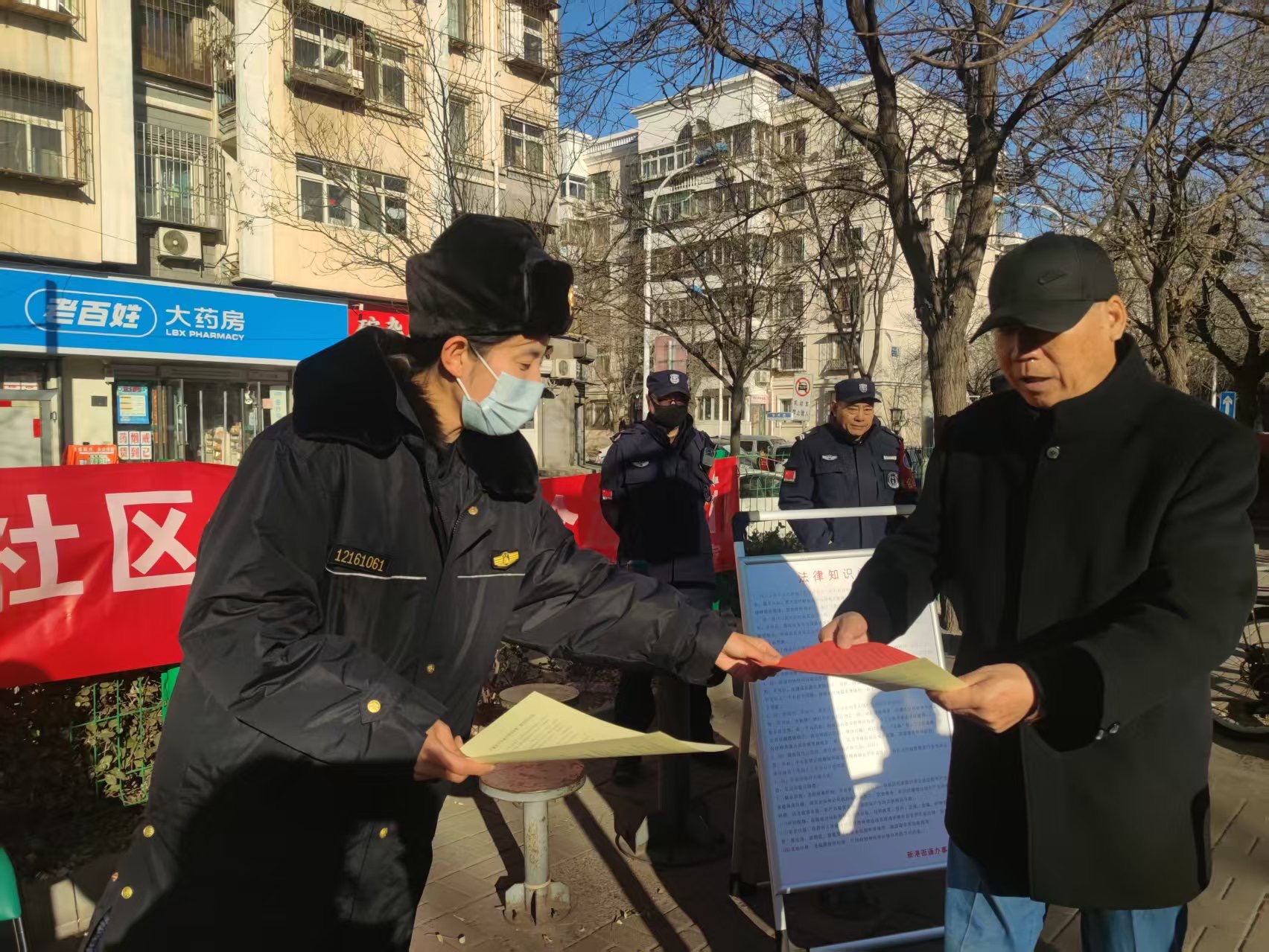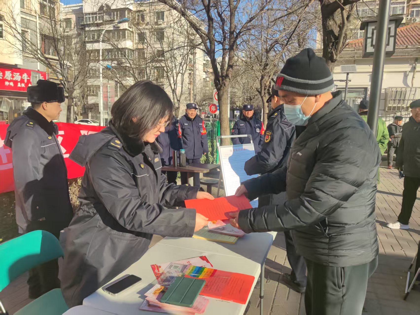 综合执法大队联合社区居委会在居民聚集区域设立固定宣传点,通过悬挂横幅、摆放展板,围绕规范房屋装修、文明祭扫、社区环境卫生、文明养犬、禁止私搭乱建、消防通道管理、电动车安全、高空抛物防范、垃圾分类及野生动物保护等十余项与居民生活密切相关的主题展开宣传。执法人员现场发放宣传资料,担任“普法讲解员”,结合案例进行讲解,并针对居民疑问提供法律咨询。宣传点还通过音频循环播放法律知识,吸引众多居民驻足互动,现场学法氛围浓厚。