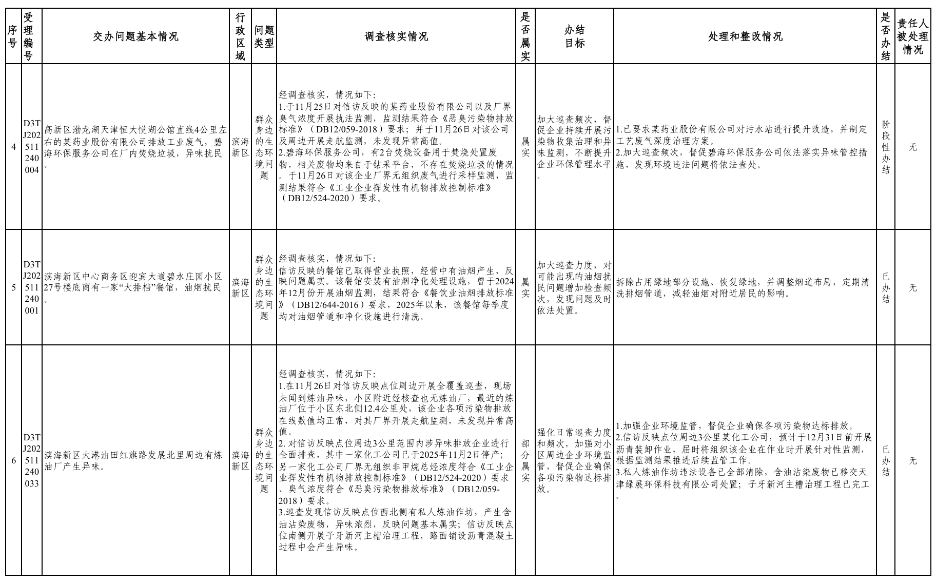 按照中央第二生态环境保护督察组工作要求,12月4日,我区已完成对交办的第六批6件群众信访举报件的调查处理,目前已办结5件,阶段性办结1件。