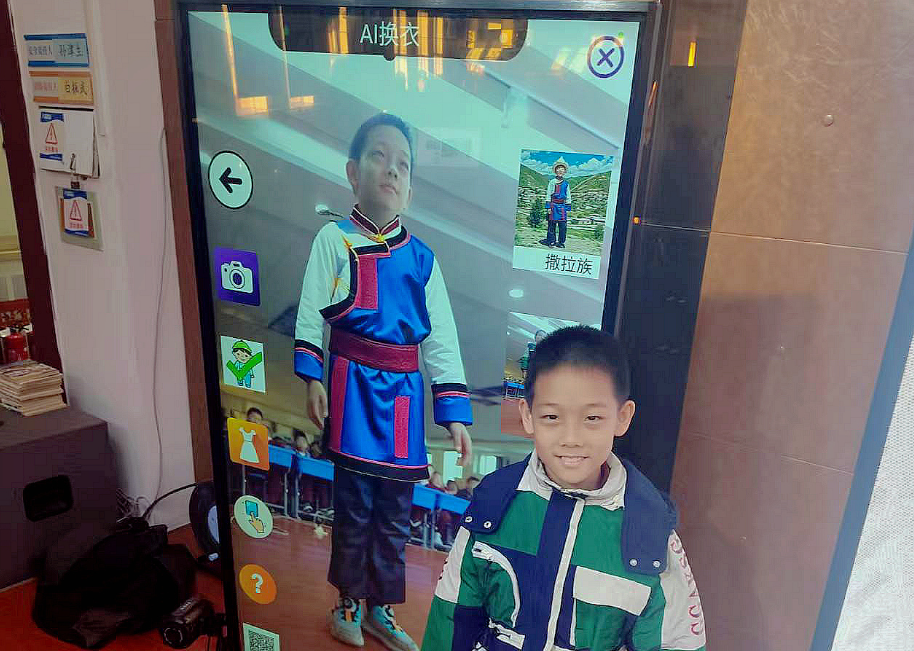 活动以“科技赋能传统文化创新”为核心,滨海新区科普专家、天津建强智能科技有限公司创始人包建强担任主讲人。他以生动通俗的语言,结合自身专业实践,向学生们揭开人工智能的“神秘面纱”。现场最令人期待的“神奇民族服饰换装”环节中,包建强通过智能设备实时捕捉学生影像,利用AI图像生成技术,将藏族藏袍、苗族银饰等民族服饰元素与学生的形象巧妙融合。当学生们看到自己“变身”为身着传统服饰的“文化小使者”时,报告厅内瞬间沸腾,掌声与欢呼声此起彼伏。这一环节不仅让学生直观感受到AI的创造力,更激发了他们对民族文化的认同与自豪。