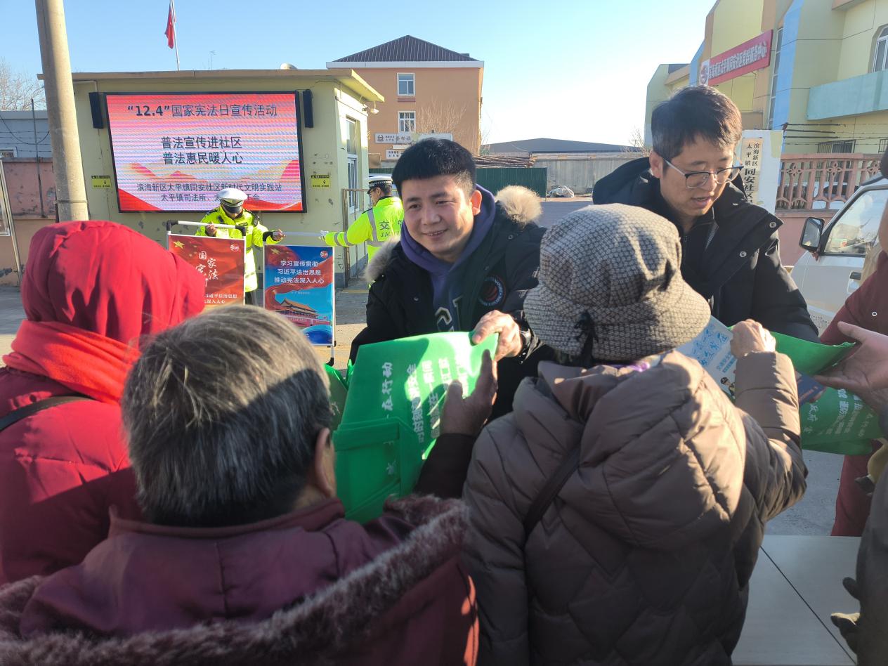 津滨网讯(记者 李婷婷 报道 刘汯林 摄影)12月5日上午,太平镇同安社区携手镇司法所、安全办、工会以及交管部门,在太平镇集市开展了普法宣传活动。此次活动紧扣 “学习宣传贯彻习近平法治思想,推动宪法深入人心” 主题,将法律知识送到群众 “家门口”,让宪法精神在烟火气中落地生根。