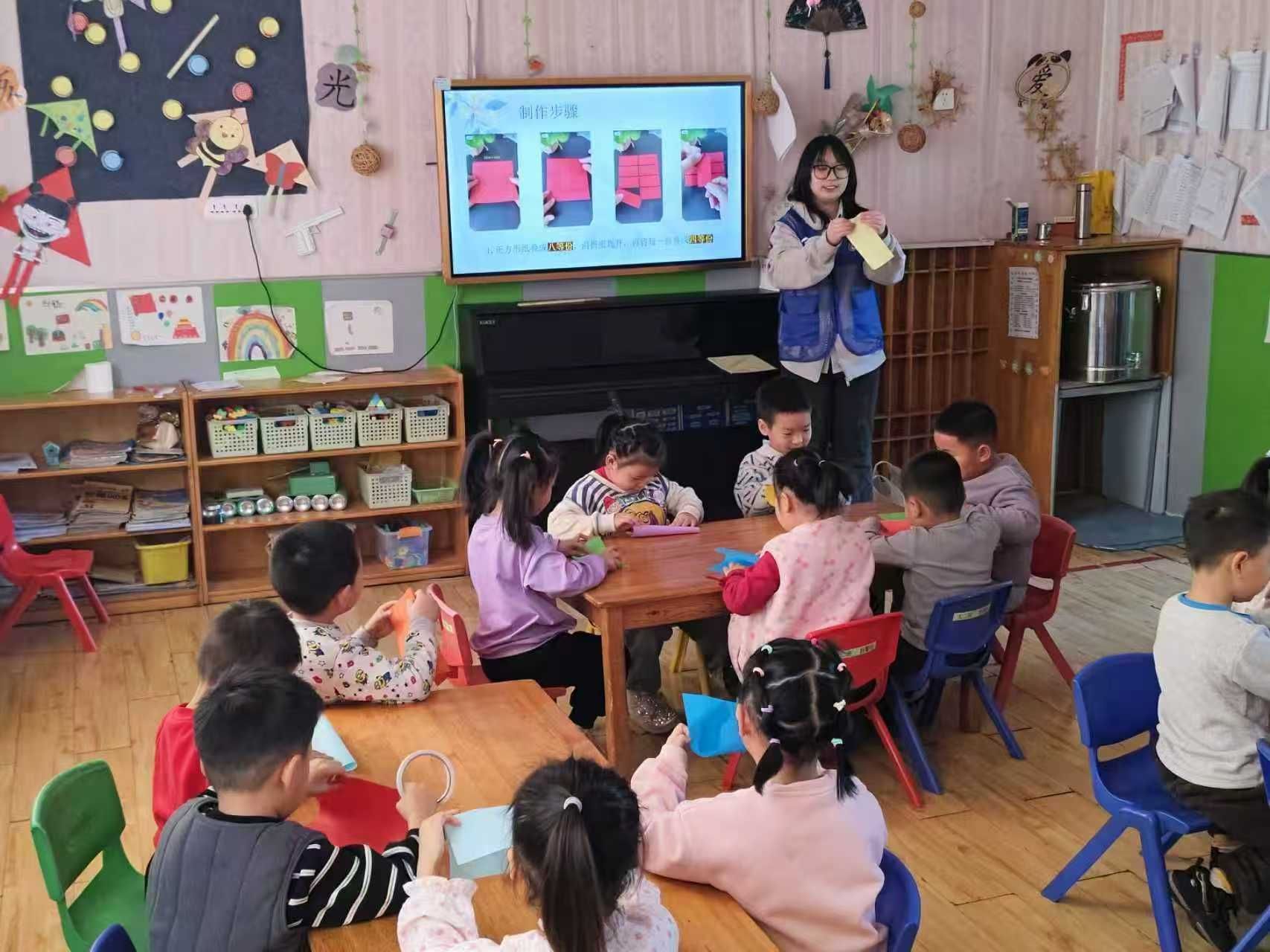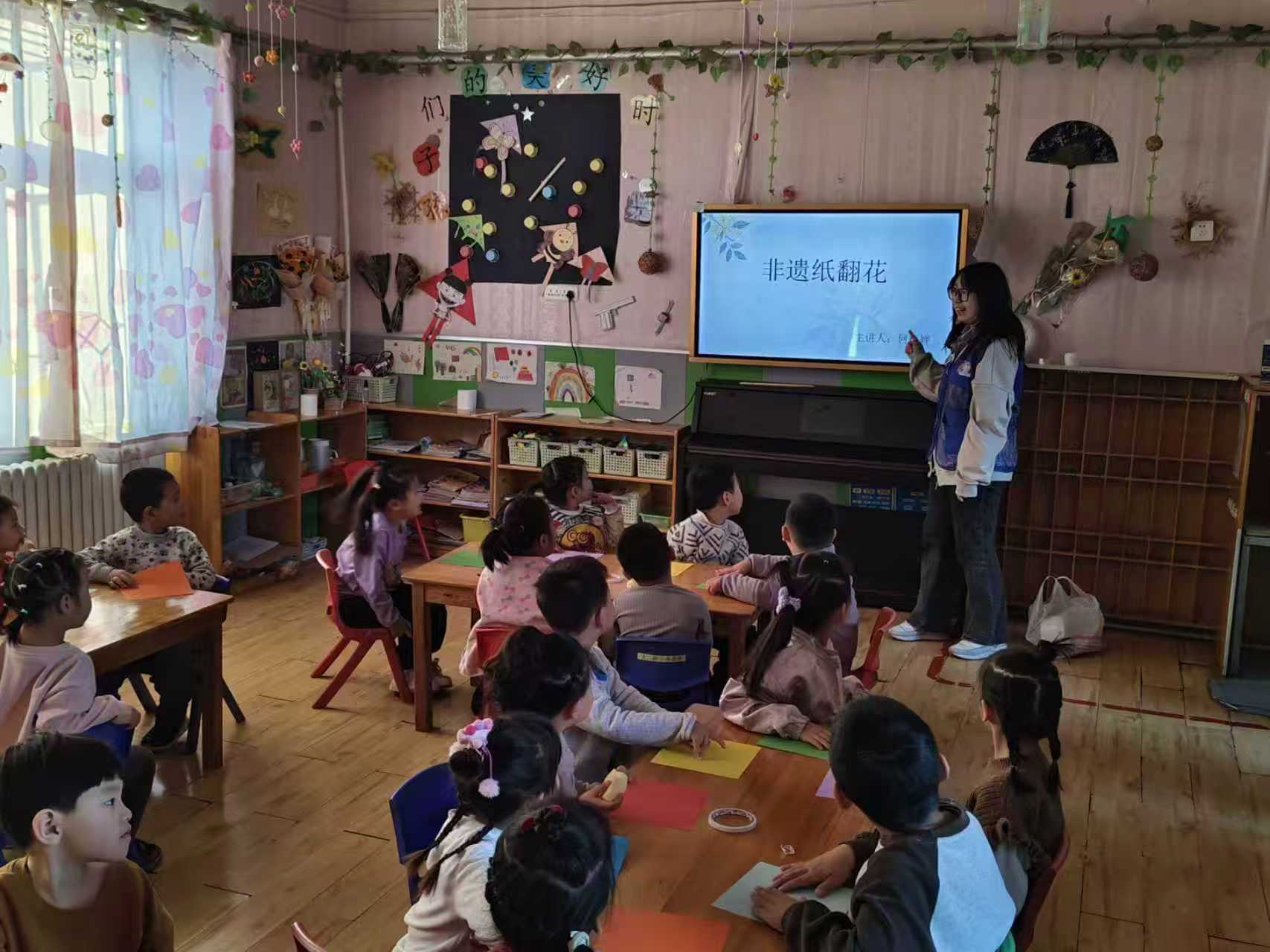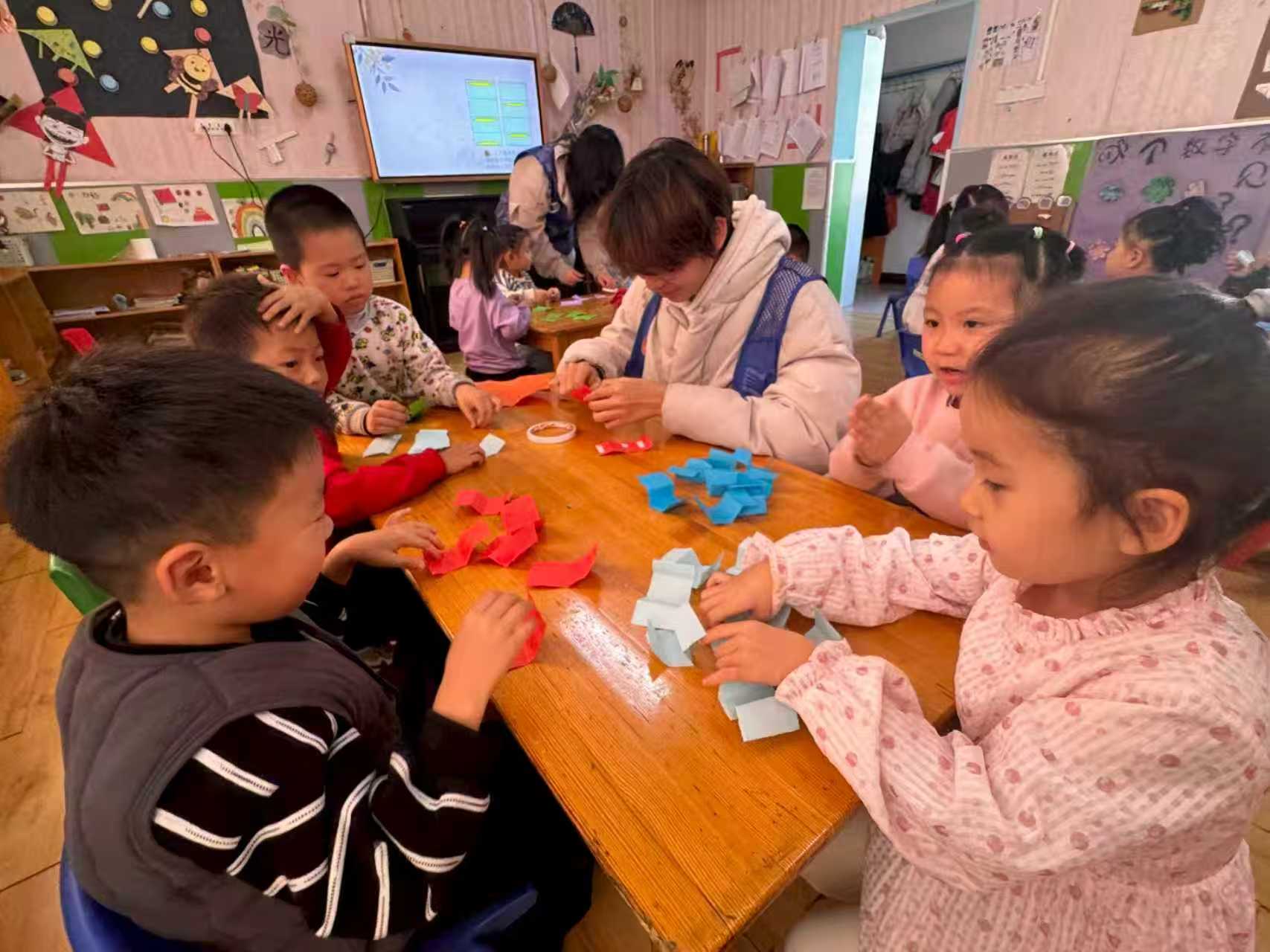 活动当天,志愿者们化身传统文化的小老师。他们首先用生动形象的语言,为孩子们讲述了“非物质文化遗产”这一概念,在幼小的心灵中播下珍视传统的种子。随后,当色彩斑斓的纸翻花在志愿者手中变幻出花朵、小鸟等各式造型时,孩子们发出阵阵惊叹,眼中充满了好奇与兴奋。在实践环节,志愿者们俯下身,耐心地一步步指导孩子们折叠、翻转,社区工作人员则从旁细心协助,共同维护着热烈而有序的课堂氛围。一张张彩纸在稚嫩的小手中渐渐“开花”,成就感与欢笑声洋溢在整个教室。
