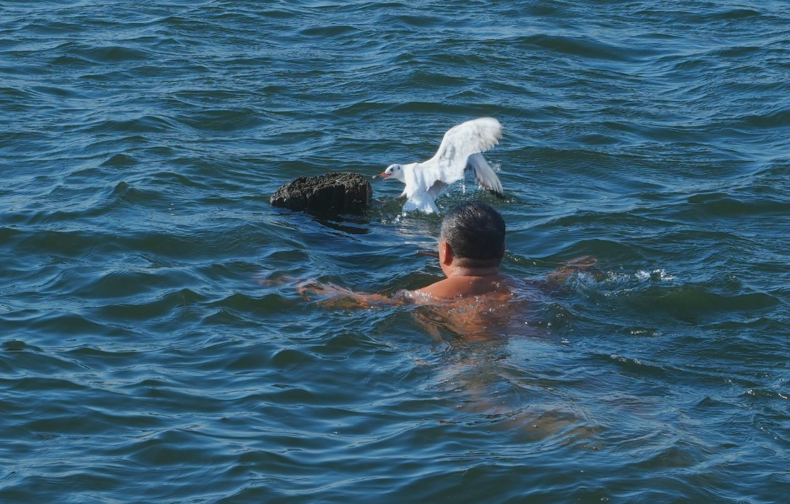 当时,爱鸟志愿者朱惠来正在现场引导游客、讲解海鸥知识,听闻呼救声后循声望去,发现受伤海鸥距岸边约10米。“不能看着它遭罪!”熟悉水性的他来不及多想,迅速脱衣,叼着随身剪刀奋力游向海鸥,小心翼翼地精准剪断缠绕的鱼线,随后抱着海鸥快速游回岸边。此时他手脚已冻得发麻,却笑着说“值了”。 最终,在爱鸟志愿者朱惠来与热心市民的联手帮助下,这只受伤的海鸥身上的缠绕物被成功解开,随后它被顺利放飞,重归蓝天。